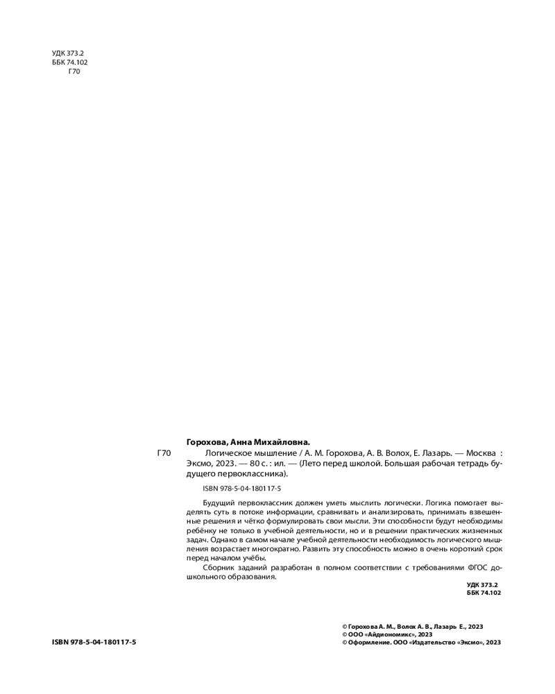 Логическое мышлениеЕлена Лазарь, Анна Михайловна Горохова, Алла Владимировна Волох