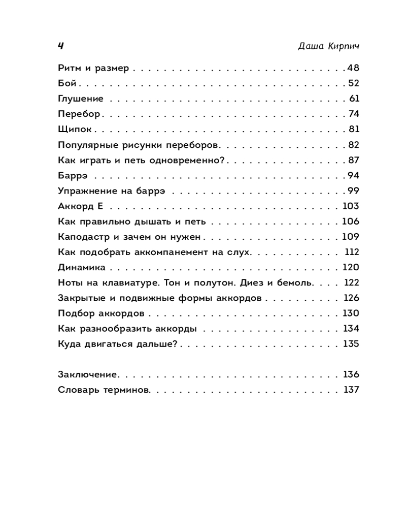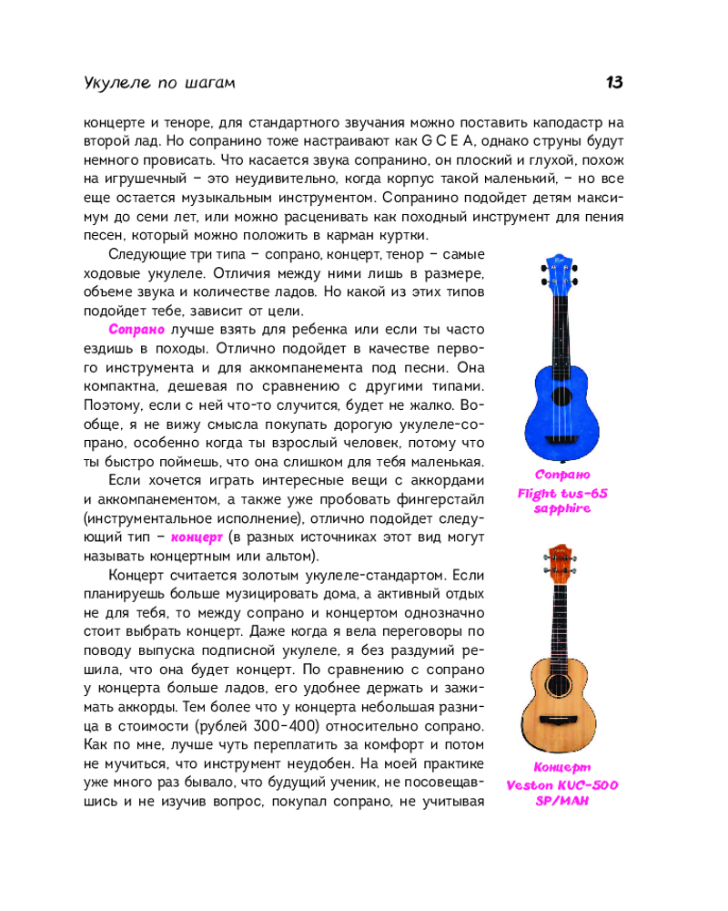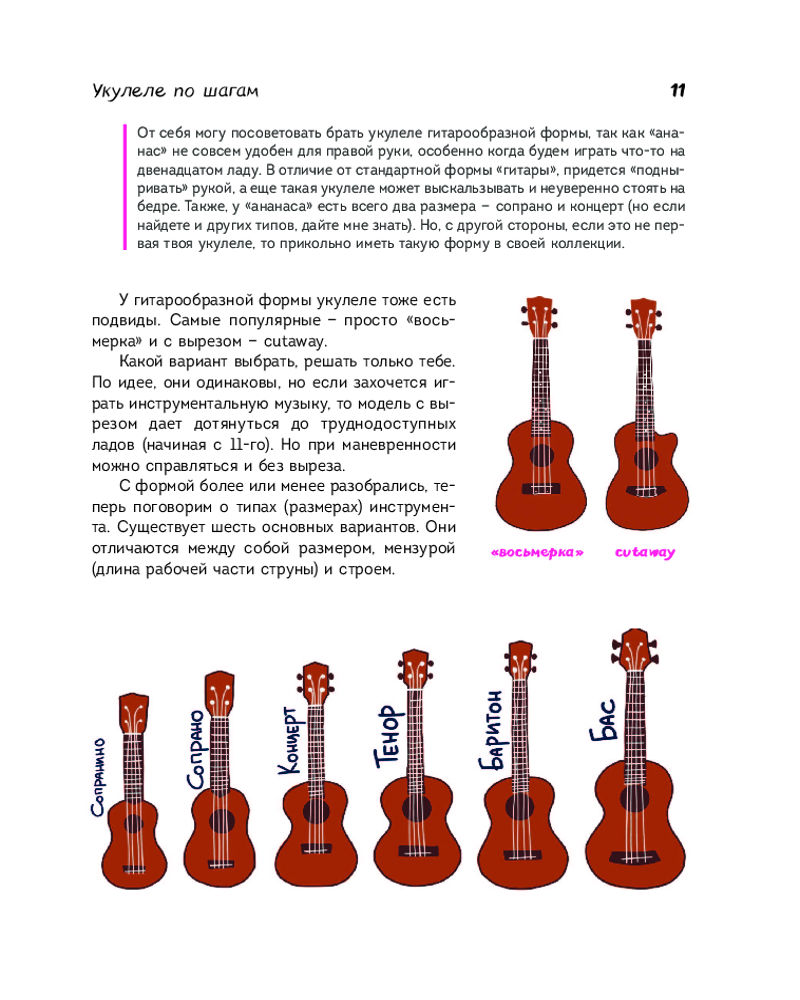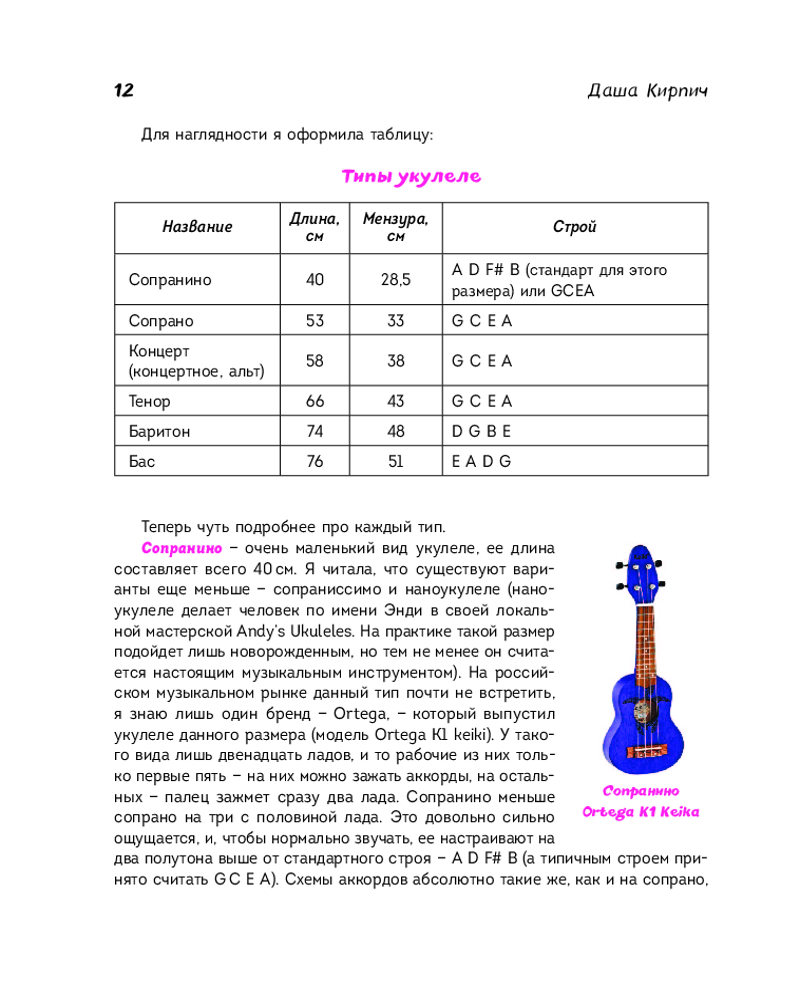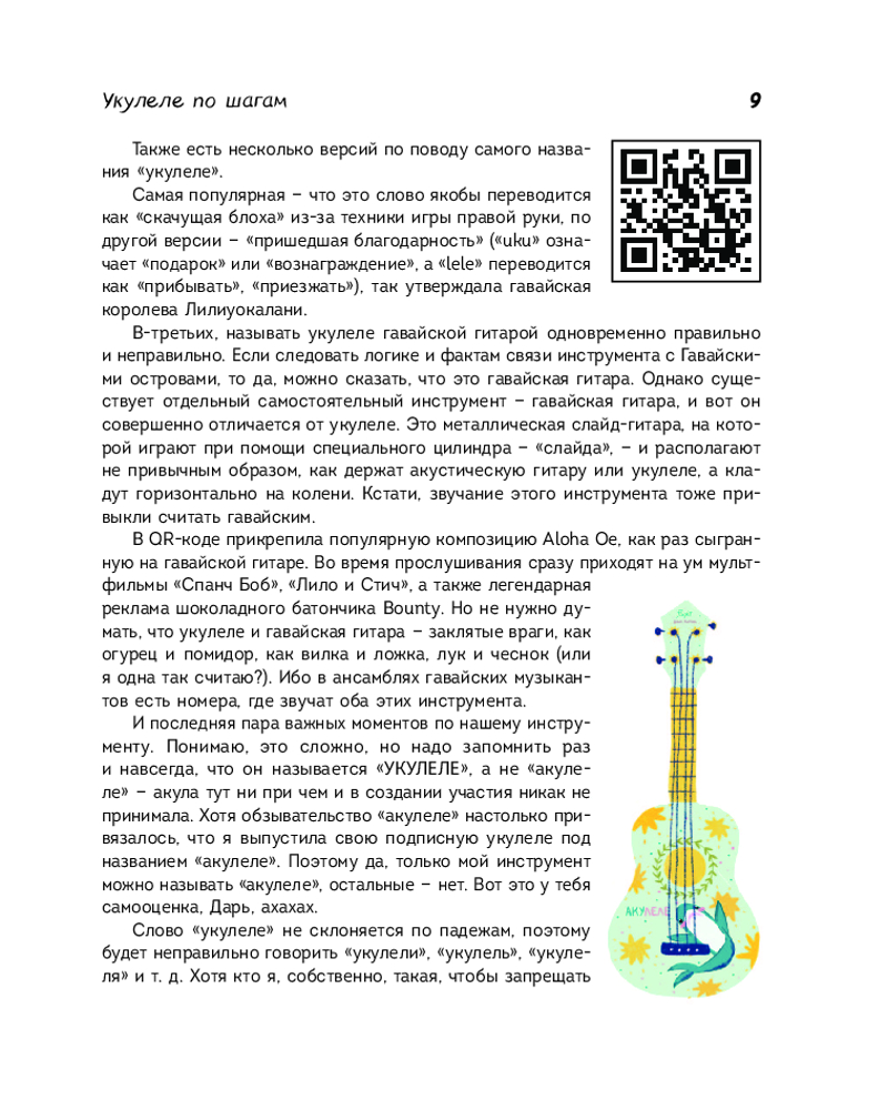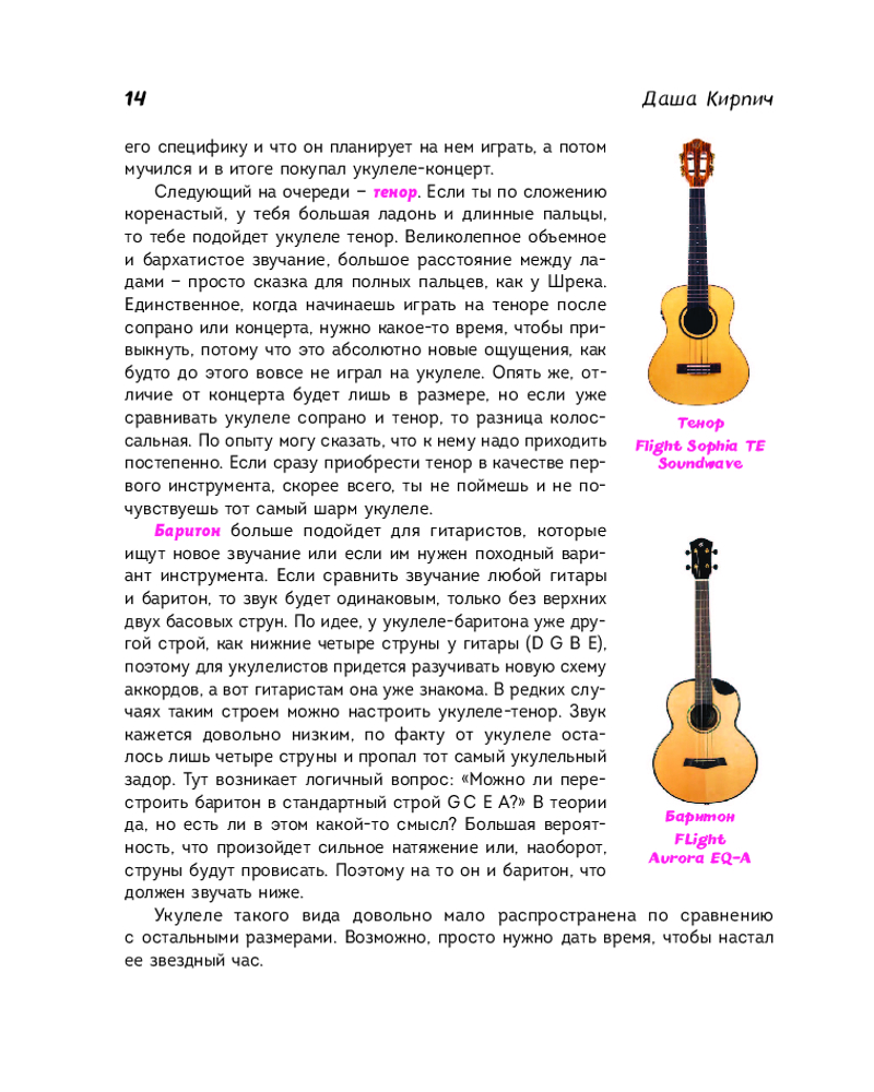 Вместе с самоучителем по игре на укулеле от Даши Кирпич этот процесс станет не только в разы понятнее, но и приятнее! Ведь каждый урок сопровождается пошаговками, иллюстрациями и веселыми советами, а объяснения написаны не сухим академичным языком, а в формате дружеской беседы.