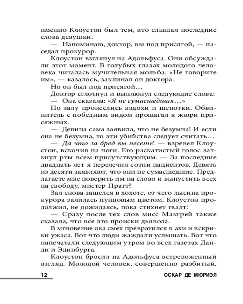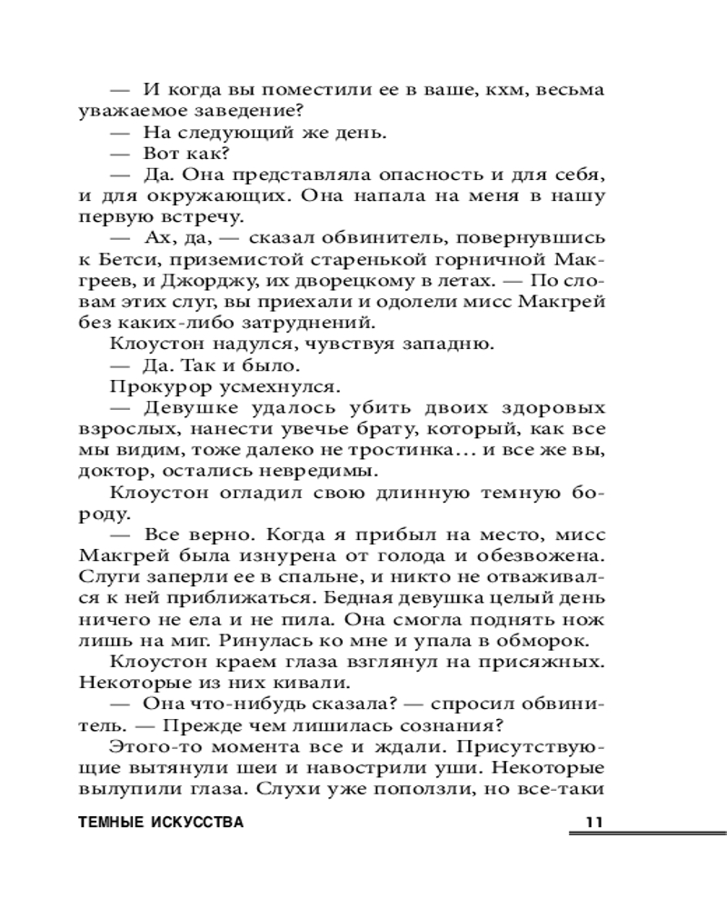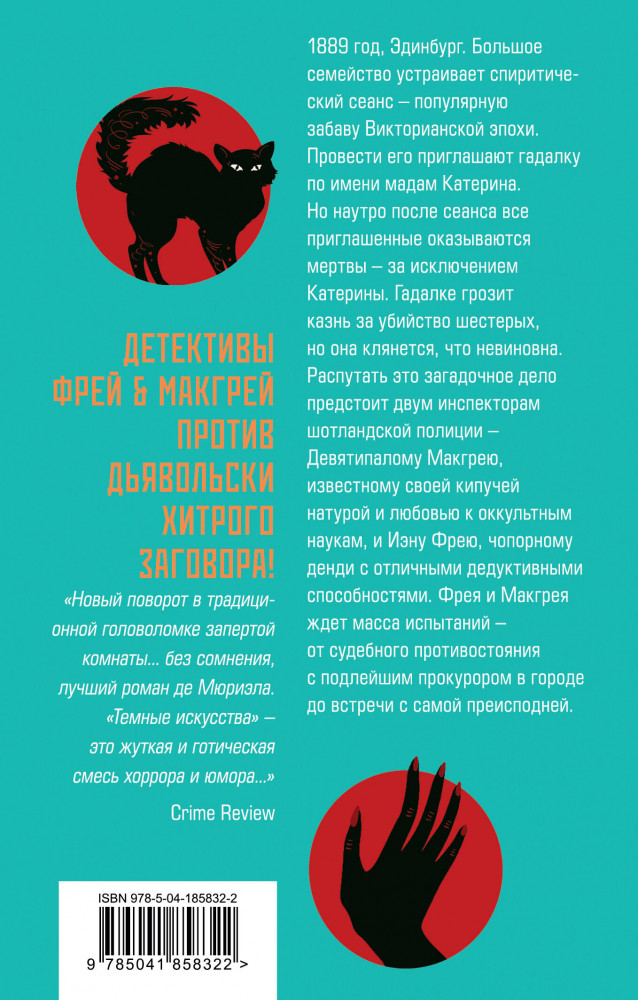 Темные искусстваВ данный момент этот товар отсутствует в продаже. Возможно, у нас найдется аналогичный или похожий товар здесь. Серия: Логика и игра (обложка) 1889 год, Эдинбург. Большое семейство устраивает спиритический сеанс — популярную забаву викторианской эпохи. Провести его приглашают гадалку по имени мадам Катерина. Но наутро после сеанса все приглашенные оказываются мертвы — за исключением Катерины. Гадалке грозит казнь за убийство шестерых, но она клянется, что невиновна. Распутать это загадочное дело предстоит двум инспекторам шотландской полиции — Девятипалому Макгрею, известному своей кипучей натурой и любовью к оккультным наукам, и Иэну Фрею, чопорному денди с отличными дедуктивными способностями. Фрея и Макгрея ждет масса испытаний — от судебного противостояния с подлейшим прокурором в городе до встречи с самой преисподней. |
