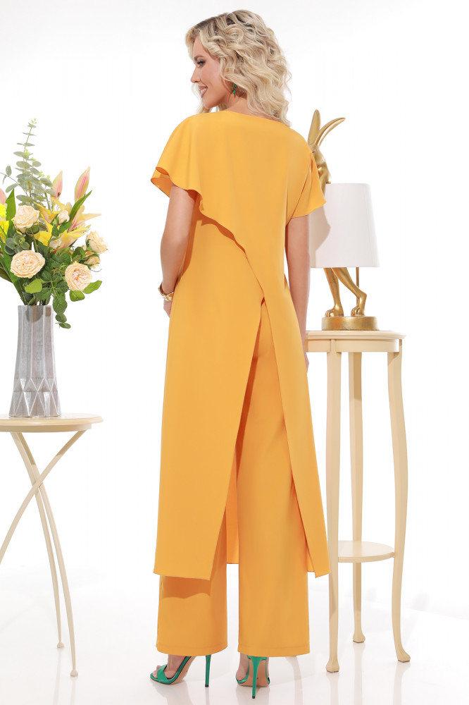 На параметры 107-86-104 заказала размер 54, который по таблице размеров должен соответствовать параметрам по максимуму 110-92-118. Скажу сразу, что на такие параметры он будет мал, имейте ввиду, брюки не налезут точно, поскольку на мои 104 я вошла впритык, не свободно и резинка у брюк довольно тугая. Ростовка хорошая, на рост до 175 примерно, я 164- надо укорачивать брюки. Фото обработки края блузы прилагаю.