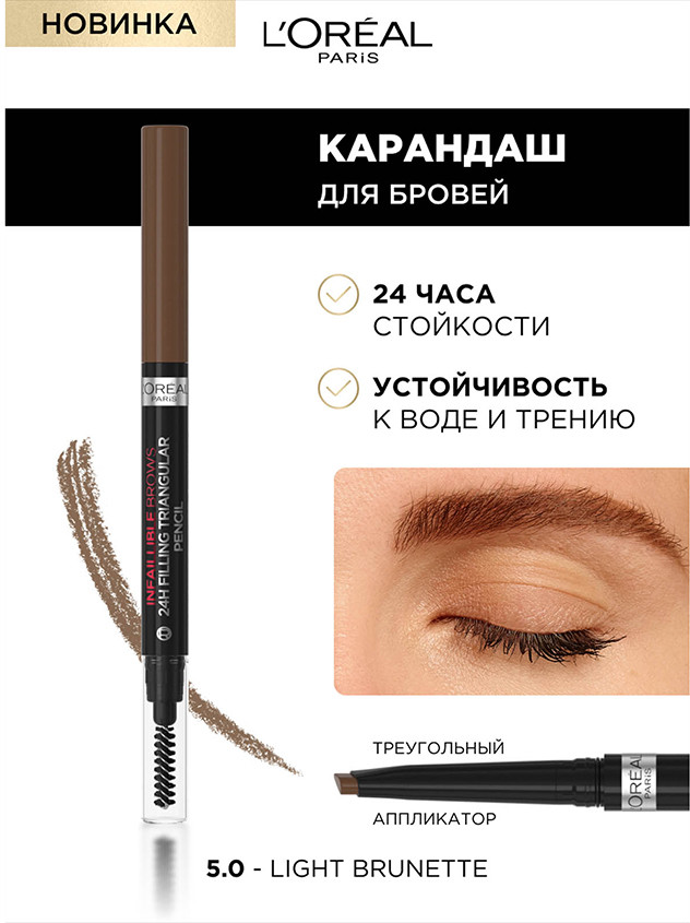 L'Oreal Paris Карандаш для бровей, оттенок 5.0 Light Brunette