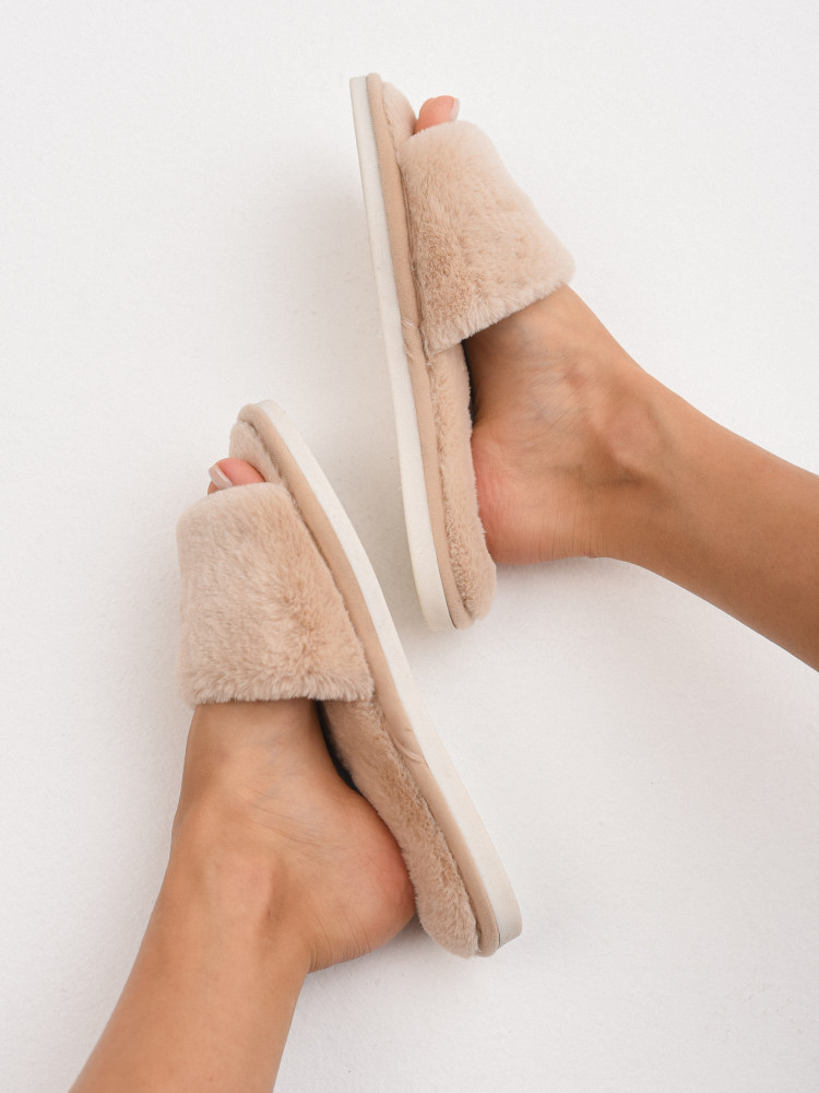 Комнатная обувь открытого типа из искусственного меха согреет ноги и подарит комфорт любому её обладателю. Тапки имеют нескользящую подошву из ПВХ с антискользящим протектором и мягкие массажные стельки, что делает их такими же удобными, как ортопедическую или спецобувь. Теплые, пушистые тапочки из искусственного материала подходят на широкую стопу, не требуют особого ухода и легко поддаются чистке. Комфортные тапочки из меховой ткани для дома и дачи можно взять в роддом вместо резиновых тапок. Ножки в такой модели будут отлично вентилироваться, а значит, в них Вам не будет жарко. Модные плюшевые женские тапочки из экошерсти подойдут даже для гостей на вечеринке подружек невесты. Легкие, утепленные, противоскользящие тапочки подходят для любого сезона.