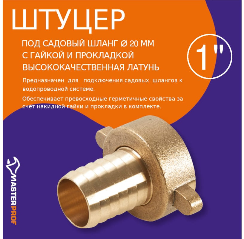 MasterProf Штуцер для садового шланга 3/4" с накидной гайкой 1"