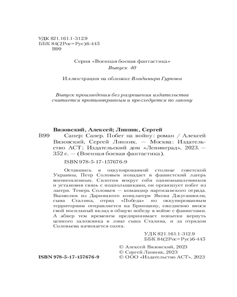 Сапер. Побег на войнуСергей Владимирович Линник, Алексей Викторович Вязовский