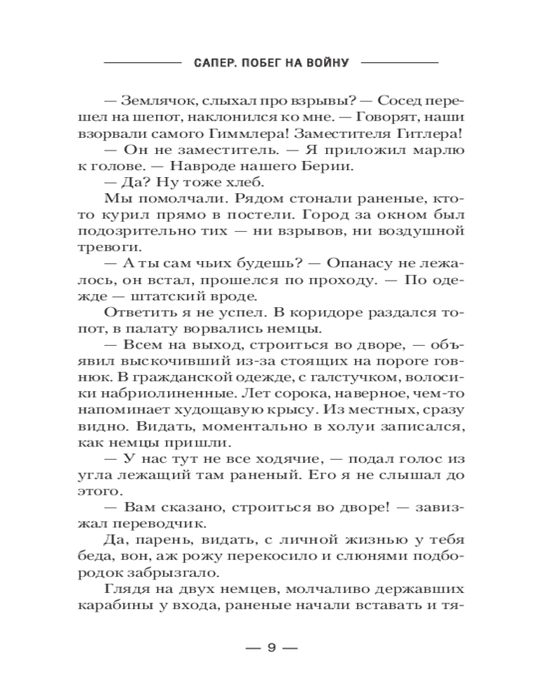Серия: Военная боевая фантастика Оставшись в оккупированной столице советской Украины, Петр Соловьев попадает в фашистский лагерь военнопленных. Сплотив вокруг себя единомышленников и установив связь с подпольщиками, он организует побег из лагеря. Теперь Соловьев — командир партизанского отряда. Вызволив из Дарницкого концлагеря Якова Джугашвили, сына Сталина, отряд «Победа» по оккупированным территориям отправляется на Брянщину, ежедневно внося свой посильный вклад в общую победу в войне с фашистами. А абвер тем временем предпринимает попытки вернуть ценного заложника в лице сына Сталина, и за отрядом Соловьева начинается охота. |