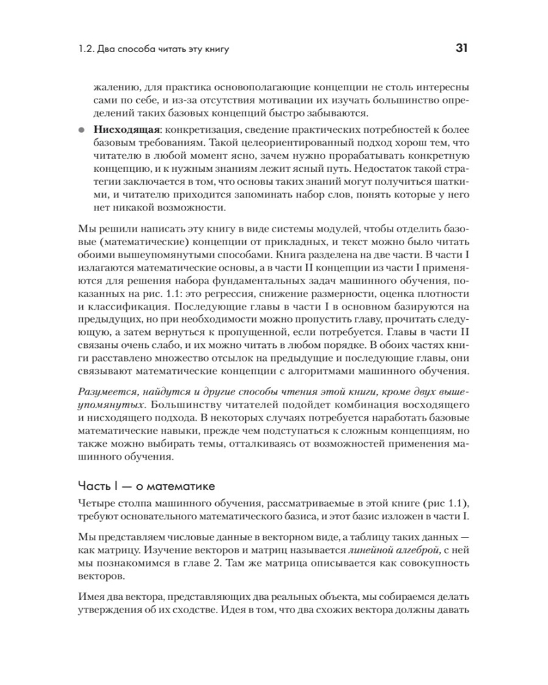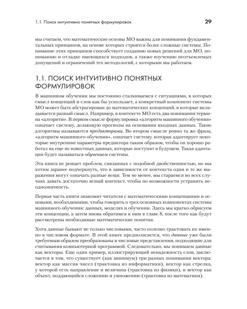 💳 Оплатить за товар можно при получении 🇰🇿 Есть бесплатная доставка по Казахстану 🎁 Копите бонусы с каждой покупки Серия: Для профессионалов Фундаментальные математические дисциплины, необходимые для понимания машинного обучения, — это линейная алгебра, аналитическая геометрия, векторный анализ, оптимизация, теория вероятностей и статистика. Традиционно все эти темы размазаны по различным курсам, поэтому студентам, изучающим data science или computer science, а также профессионалам в МО, сложно выстроить знания в единую концепцию. Эта книга самодостаточна: читатель знакомится с базовыми математическими концепциями, а затем переходит к четырем основным методам МО: линейной регрессии, методу главных компонент, гауссову моделированию и методу опорных векторов. |