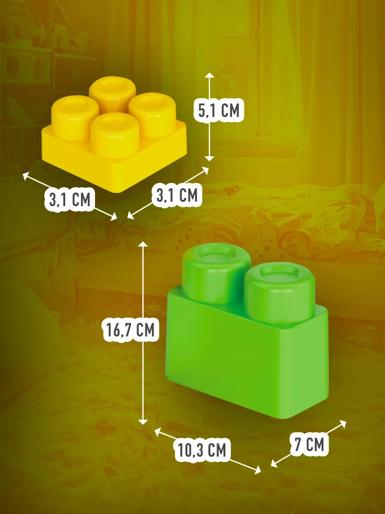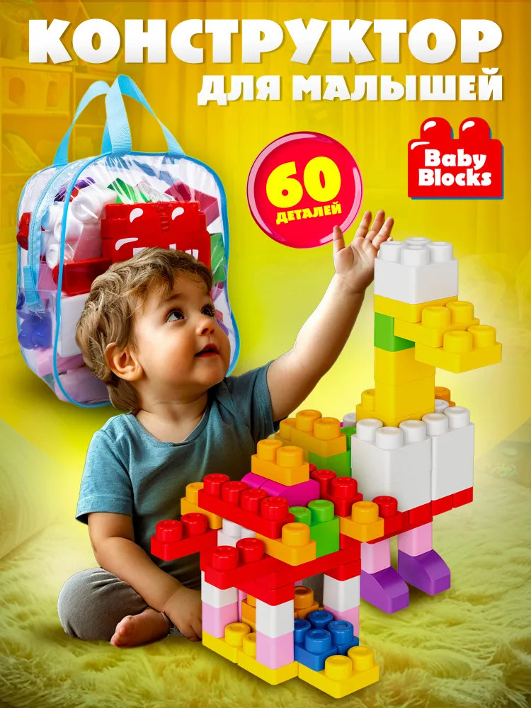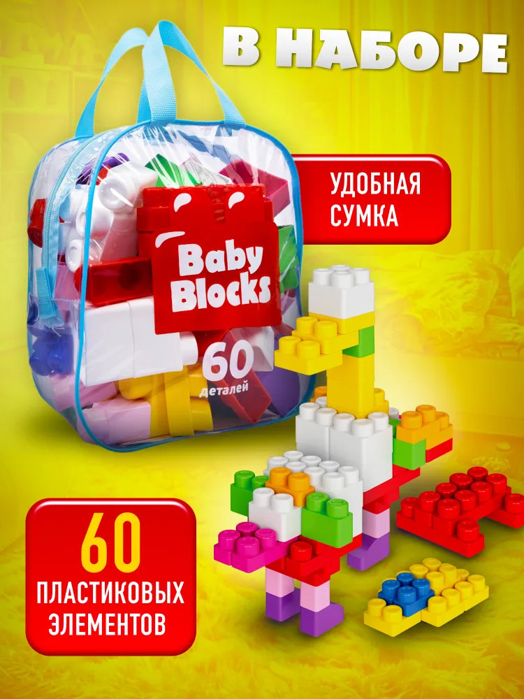 Серия: Baby Blocks Набор из 60 пластиковых элементов в удобной сумке. Детали конструктора имеют крупный размер — от 31×31×52 мм до 167×70×103 мм, что делает игрушку подходящей для самых маленьких любителей конструирования. В состав набора входят разноцветные детали для строительства в виде блоков-кирпичиков. Главная особенность этого конструктора — яркие, гладкие и крупные детали, с которыми будет удобно играть даже самым маленьким. |