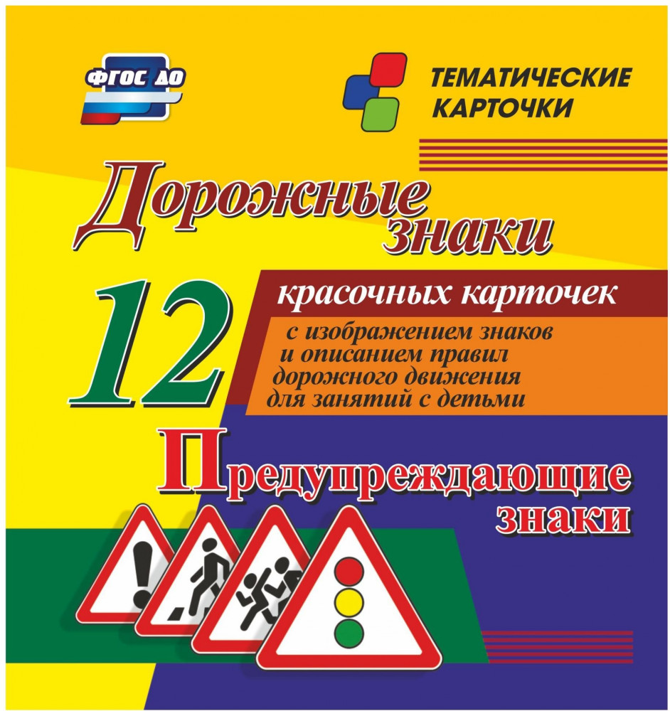 Дорожные знаки. Предупреждающие знаки. 12 красочных карточек с изображением знаков и описанием