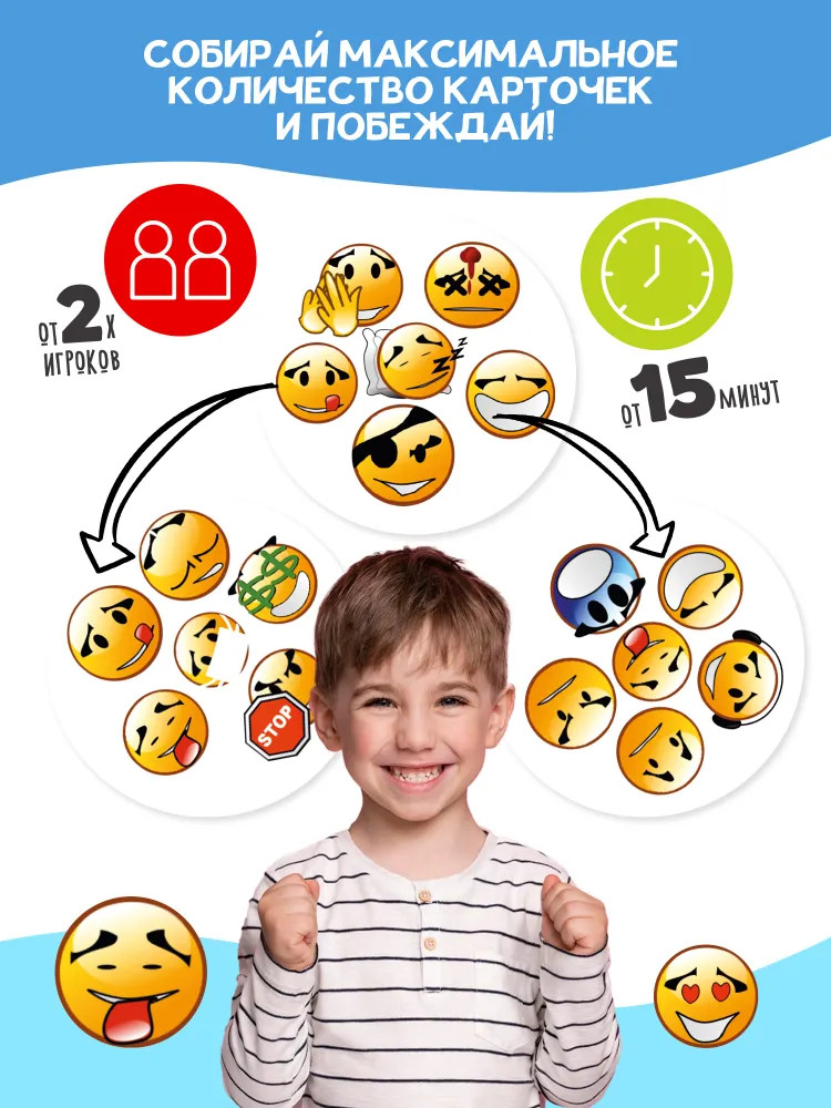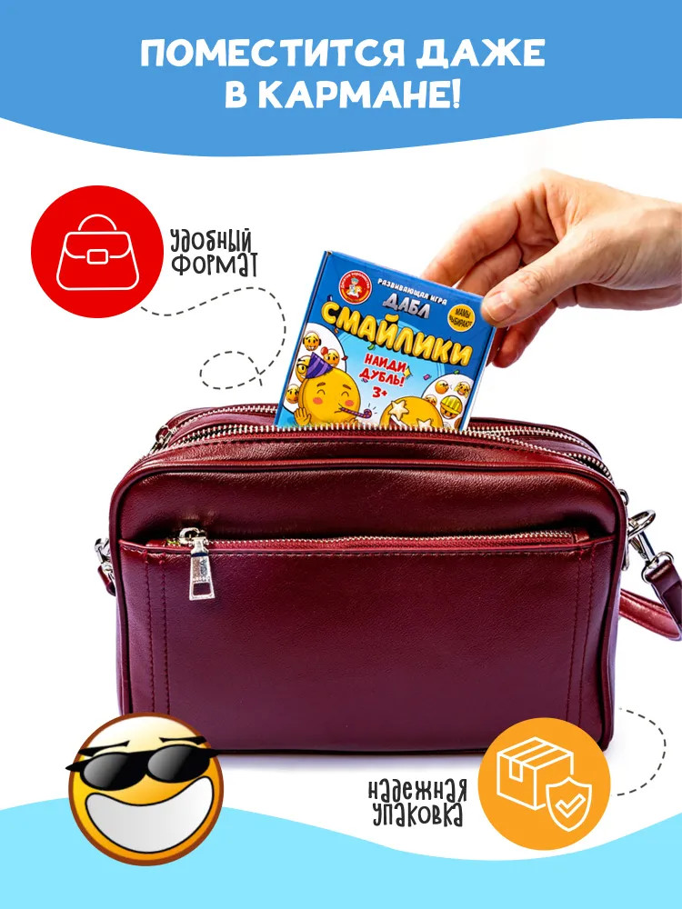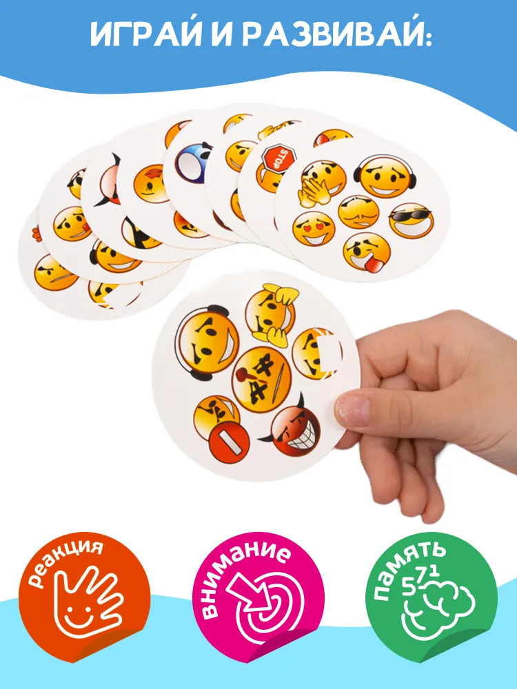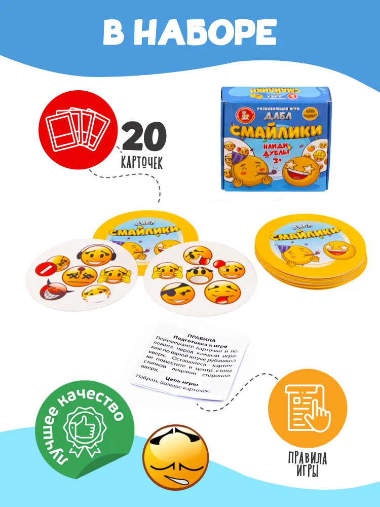 💳 Оплатить за товар можно при получении 🇰🇿 Есть бесплатная доставка по Казахстану 🎁 Копите бонусы с каждой покупки Серия: Дабл Увлекательная игра для детей Дабл «Смайлики» — это веселая игра для компании на внимательность и быстроту реакции. Небольшой формат игры позволяет брать ее с собой, она поместится в сумочке или рюкзаке. |