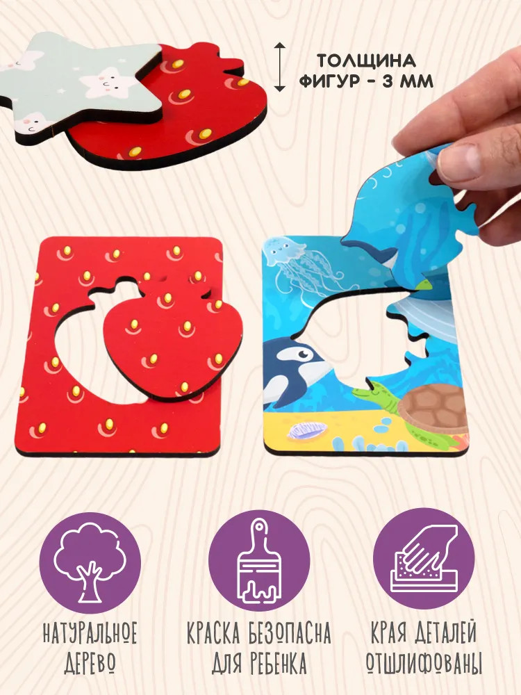 Как играть: выложите досочки отдельно, а вкладыши отдельно. Задача ребёнка — вставить подходящие вкладыши в соответствующие прорези, выбирая по цвету и форме.
