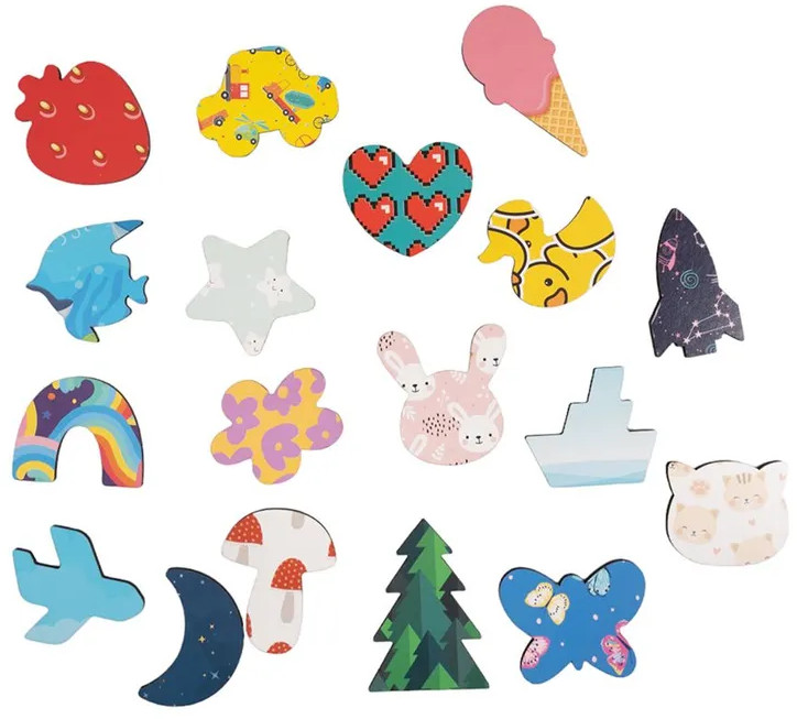 • геометрические фигуры в виде пазлов-вкладышей — 18 шт.