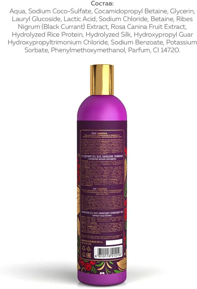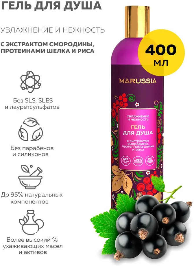 Marussia Гель для душа с экстрактом смородины, протеинами шелка и риса «Увлажнение и нежность»