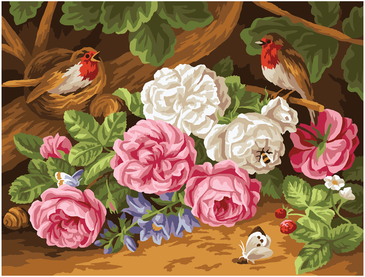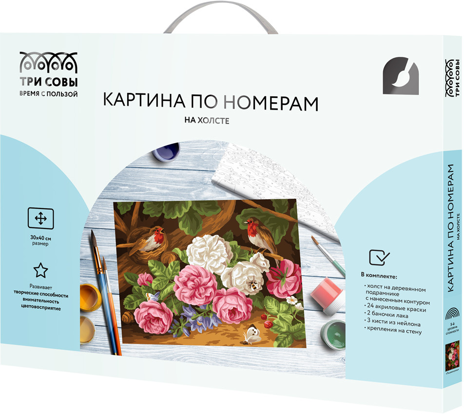 • холст на деревянном подрамнике 30×40 с нанесенным контуром, пронумерованный в соответствии с номерами красок. Контур под раскрашивание нанесен в том числе и на торцы подрамника, что позволяет разместить готовую работу на стене не обрамляя в багет или раму. Технология точной разбивки сюжета картины на разные цветовые оттенки гарантируют правильность исполнения полотна;
