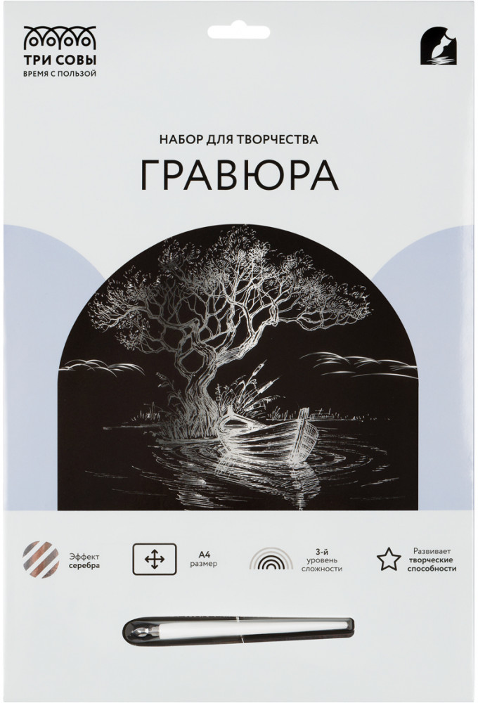 Гравюра — это увлекательный, популярный, а главное несложный вид творчества, который будет интересен не только детям, но и взрослым. Работа над гравюрой развивает творческие способности, внимательность, а также помогает избавиться от напряжения и снять стресс. Интересные современные дизайны отлично впишутся в интерьер дома. Упаковку можно использовать в качестве рамки, которую вы можете приклеить или повесить на стену. |