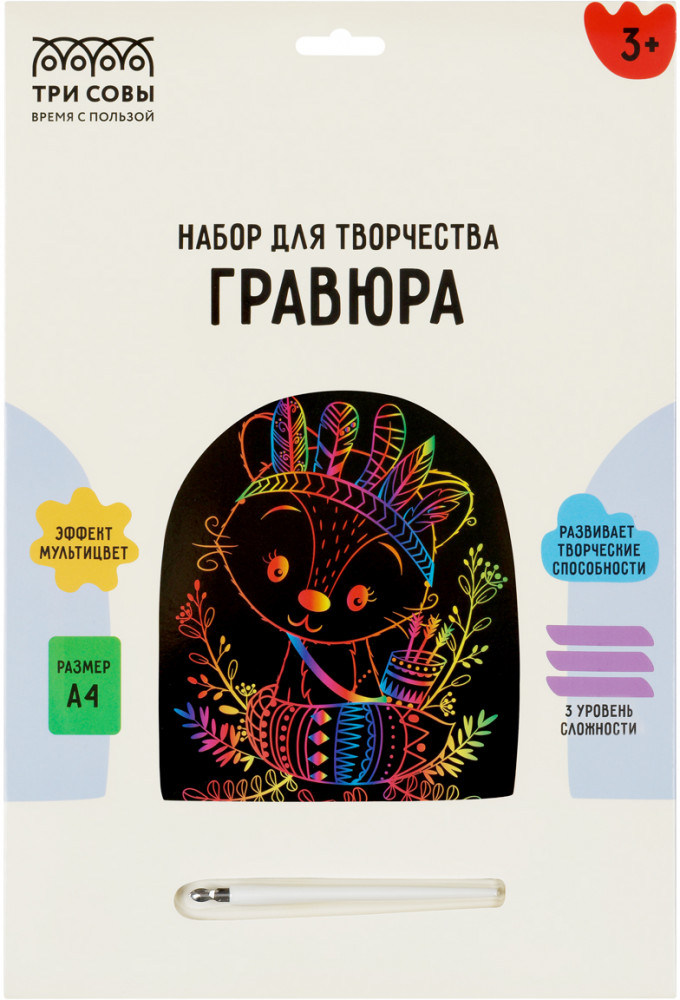 Три совы Гравюра с мультицветной основой «Лиса»+26