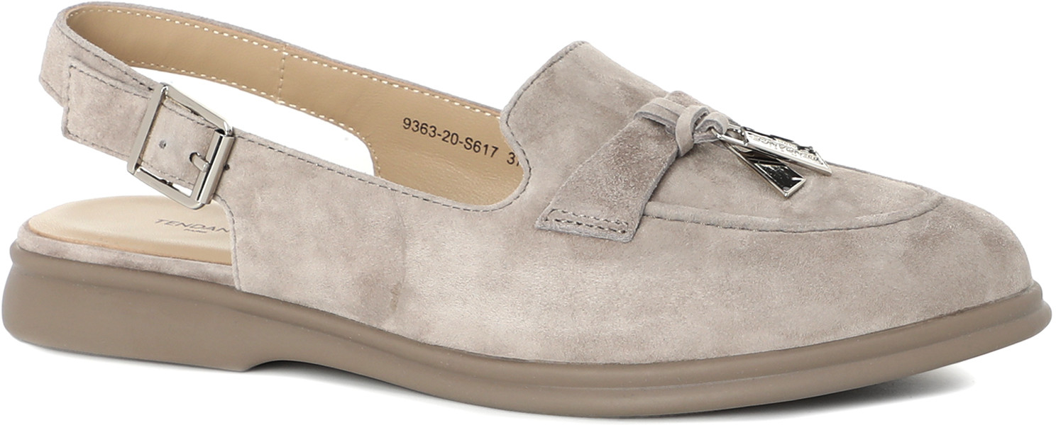 Верх модели выполнен из натуральной замши. Подкладка и стелька из натуральной кожи. В обуви будет комфортно с первого дня. Толщина подошвы — 1,3 см, высота каблука — 2,3 см. Способ соединения подошвы — клеевой.