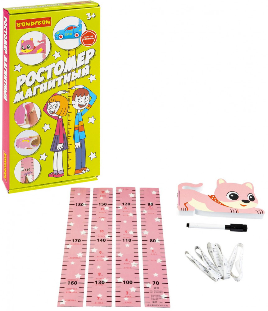 Bondibon Ростомер магнитный «Котик»В данный момент этот товар отсутствует в продаже. Возможно, у нас найдется аналогичный или похожий товар здесь. Данный ростомер включает в себя 4 измерительных линии на магнитной основе, объемную тематическую 3D-фигуру, с помощью которой удобно отмечать рост ребенка, маркер, мультяшные разноцветные стикеры и измерительную ленту. Чтобы удачно разместить инструмент на стене, ее необходимо предварительно очистить. Измерительные линии крепятся с помощью специального клеевого основания, которое не оставляет следов и дает возможность переклеивать ростомер в другие места. Маркером можно ставить отметки, а затем стирать с помощью встроенной губки. Используйте ростомер на очищенных и ровных поверхностях. Ростомер рассчитан на детей от 1 до 4 лет и ростом до 180 см. |