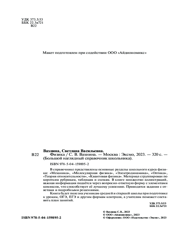Справочник станет отличным подарком ученикам средней и старшей школы, которые только начинают изучать физику или хотят углубить свои знания. Книга прослужит не один год благодаря интегральному переплёту и качественной полиграфии.