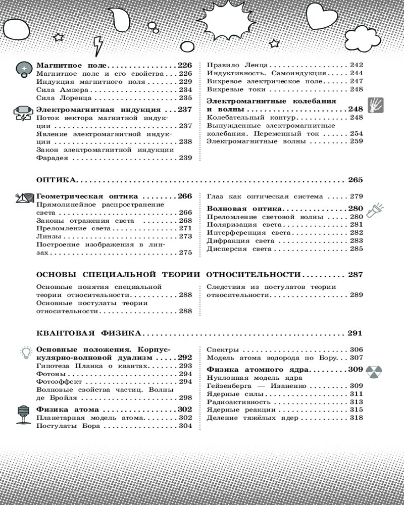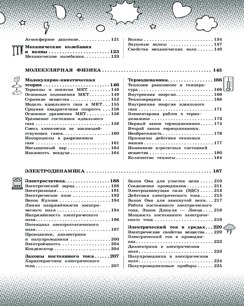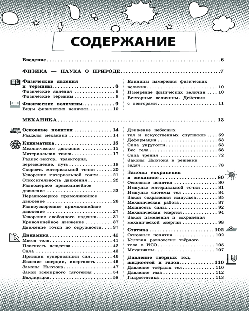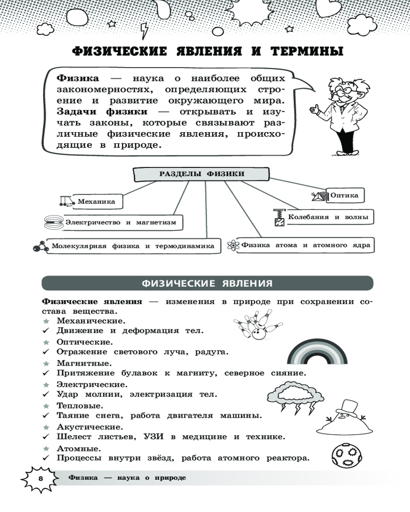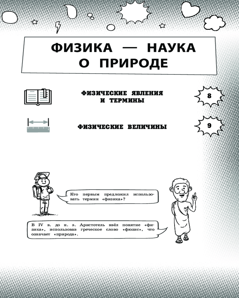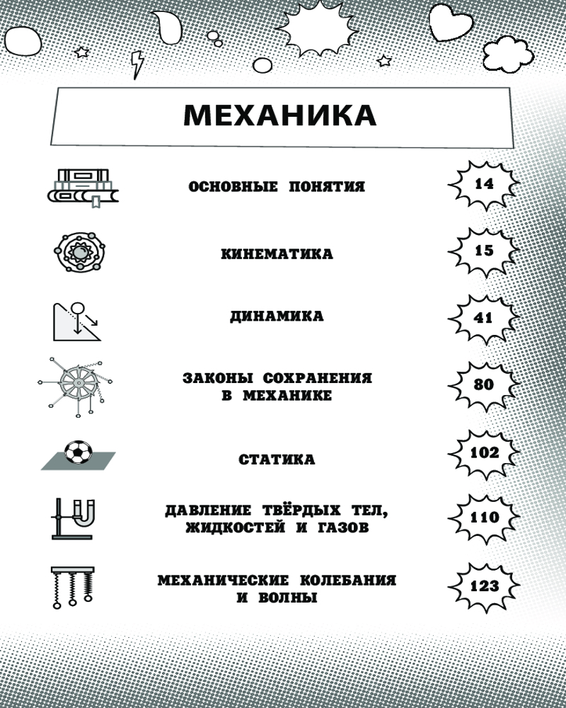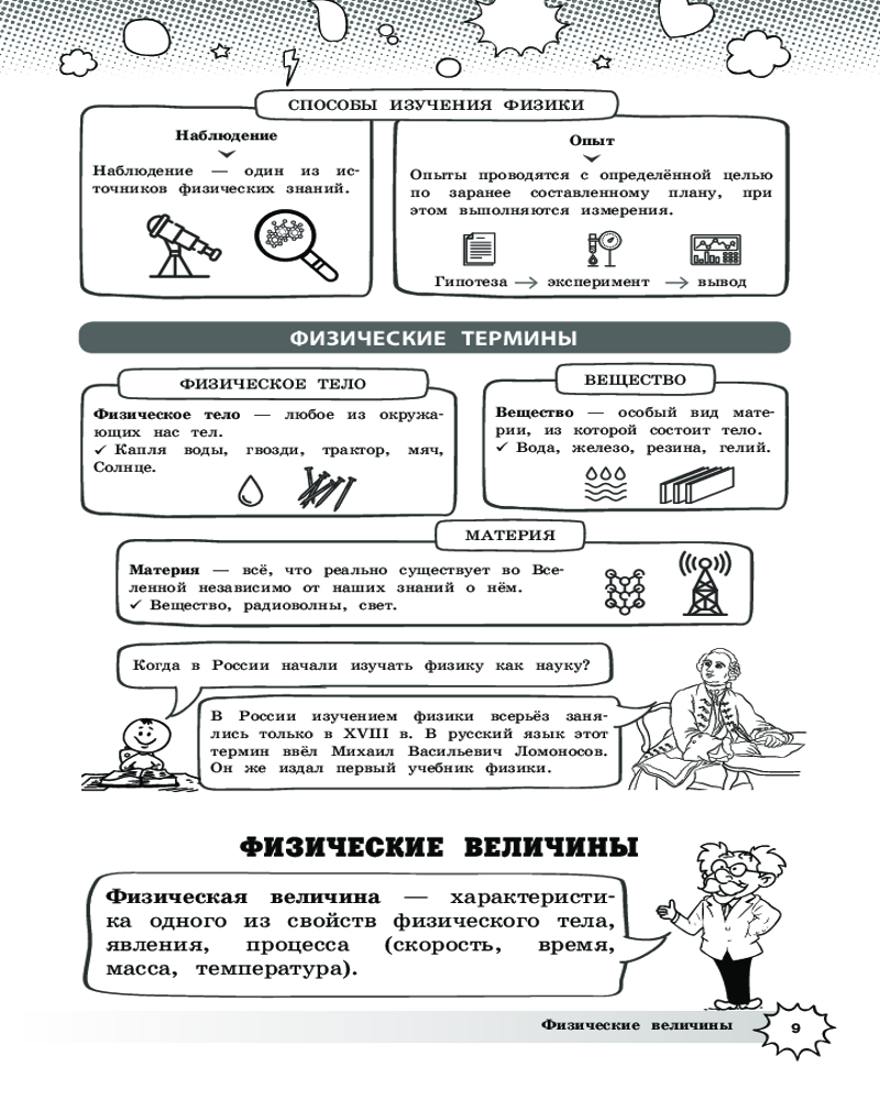 Если вы путаетесь в законах, понятиях и не можете уложить в голове весь объёмный материал за школьный курс, то это пособие идеально вам подойдёт. В книге нет длинных и скучных текстов — весь материал разбит по коротким рубрикам, таблицам и схемам, которые дополняют иллюстрации. Важная информация подаётся через вопросно-ответную форму с элементами комиксов. Такая форма изложения теории сделает обучение не только эффективным, но и интересным.