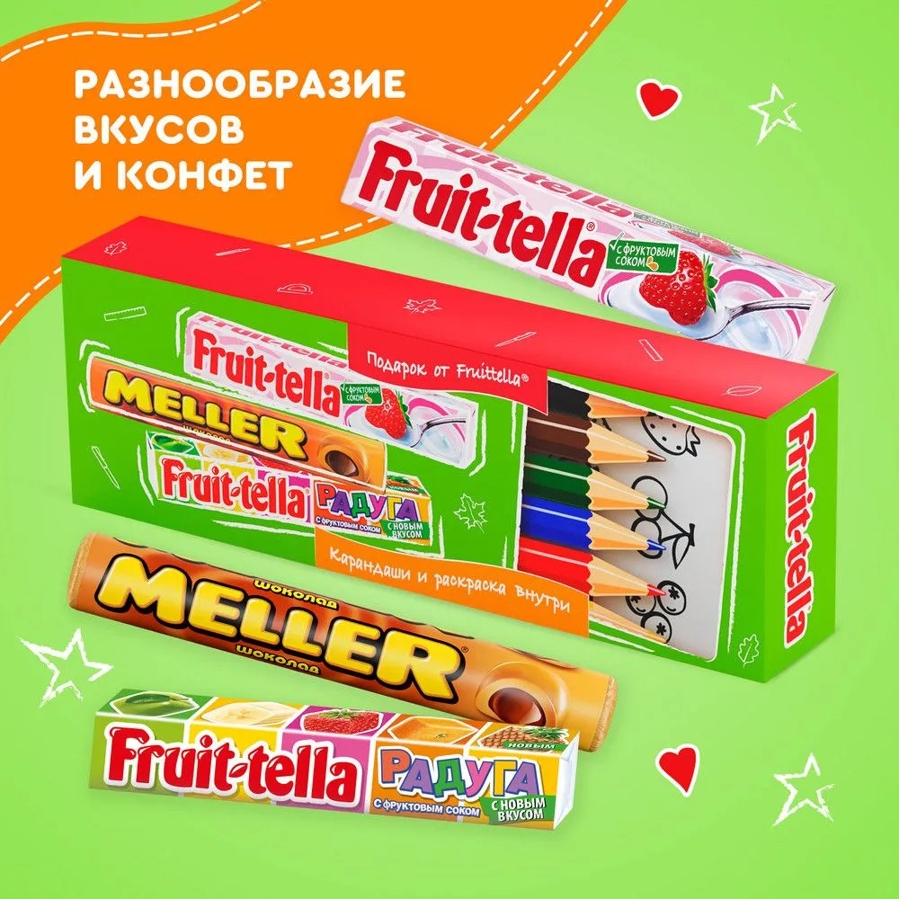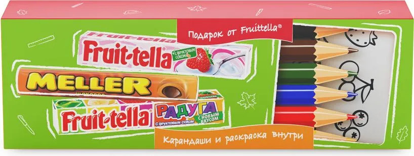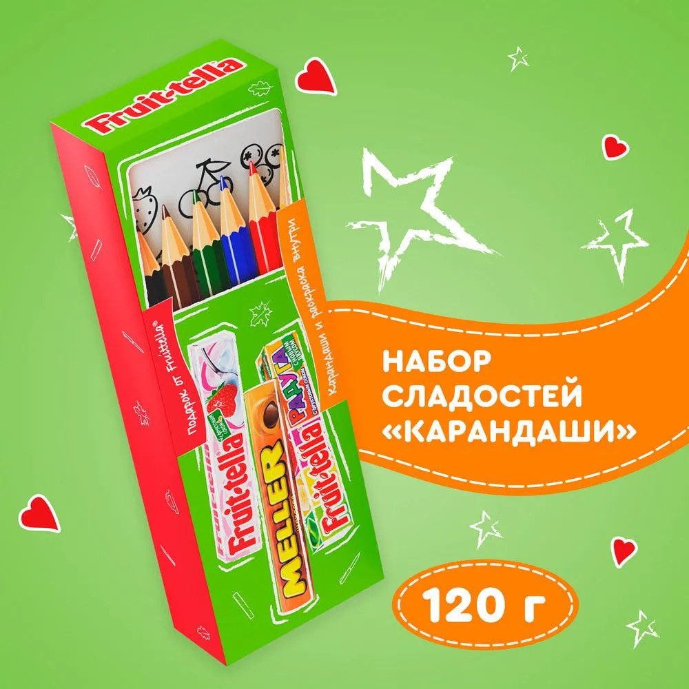 Fruittella Набор сладостей «Карандаши»В данный момент этот товар отсутствует в продаже. Возможно, у нас найдется аналогичный или похожий товар здесь. Набор сладостей «Карандаши» — это микс популярных сладостей от брендов Fruittella и Meller в необычной упаковке в форме пенала для карандашей. В наборе вы сможете найти жевательные конфеты и жевательный ирис. А ещё внутри вас ожидает дополнительный подарок от Fruittella — карандаши и раскраска. Прекрасный подарок, если вы любите конфеты и творчество Набор можно использовать в качестве сладкого подарка на День рождение или школьный праздник Зарядись энергией вместе с набором кондитерских изделий «Карандаши»! |
