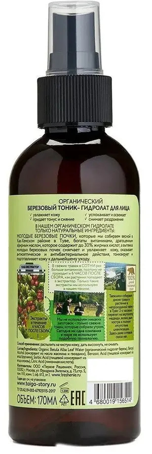 Рецепты Бабушки Агафьи Тоник-гидролат для лица «Березовый органический»