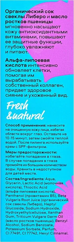 Пилинг работает, заживляет мелкие недостатки, подсушивает прыщики, очищает кожу. Лёгкое покалывание в первый раз и краснота. Затем сходит и лицо привычного оттенка