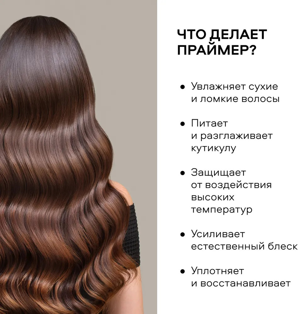 Действительно увлажняет. Наношу на мокрые волосы, и после того как волосы подсохнут - наношу еще раз. У меня очень кудрявые сухие и пористые волосы, после применения праймера становятся более мягкими и не такими пушистыми.
