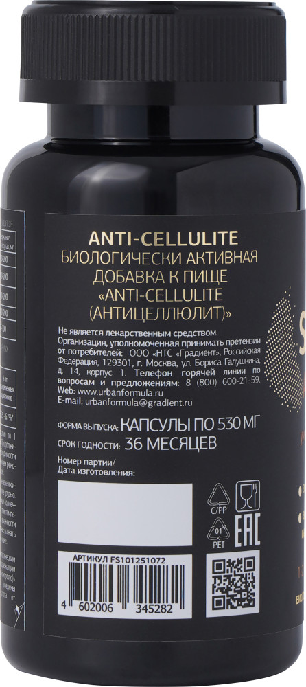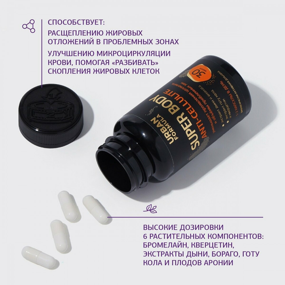 Urban Formula БАД «Anti-cellulite»В данный момент этот товар отсутствует в продаже. Возможно, у нас найдется аналогичный или похожий товар здесь. Серия: Super Body БАД «Anti-cellulite» от Urban Formula — комплекс, который помогает уменьшить проявление целлюлита, сделать кожу более ровной и гладкой. В его составе 6 растительных компонентов, эффективных в борьбе с «апельсиновой коркой». Прием комплекса способствует стимулированию расщепления жировых отложений в проблемных зонах, оказывает дренажный эффект, препятствуя накоплению лишней жидкости в организме и предотвращая отеки, повышает эластичность кожи. Anti-cellulite — биодобавка из серии эффективных современных комплексов Super Body для похудения и создания идеального тела. |