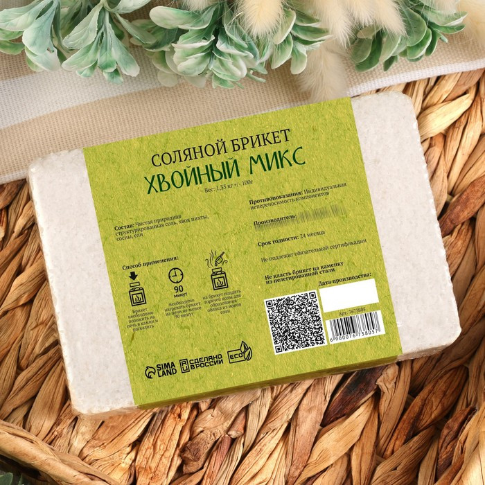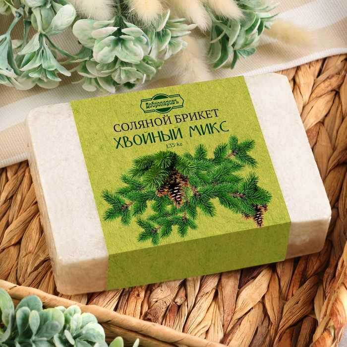 Добропаровъ Соляной брикет «Хвойный микс»-25% большой брикет солевой пар приятный аромат соленый воздух