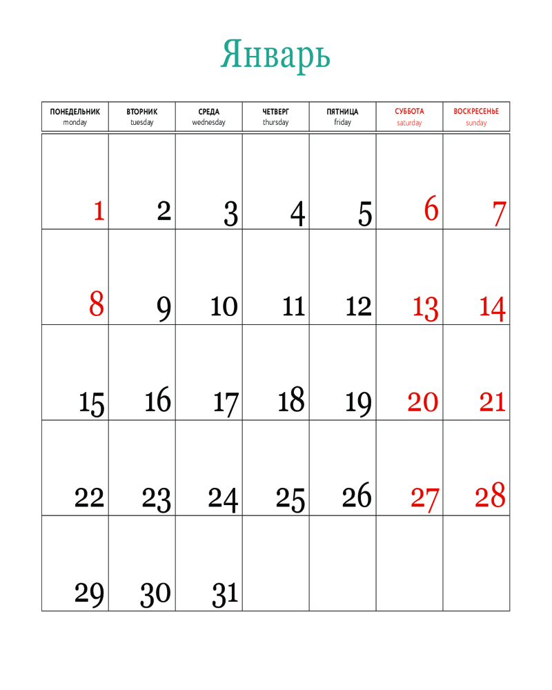 Благодаря большому формату и высокому качеству изображений этот календарь может стать отличным дополнением интерьера. В нем также отмечены выходные дни, а просторная сетка позволяет удобно планировать время и записывать важные события.