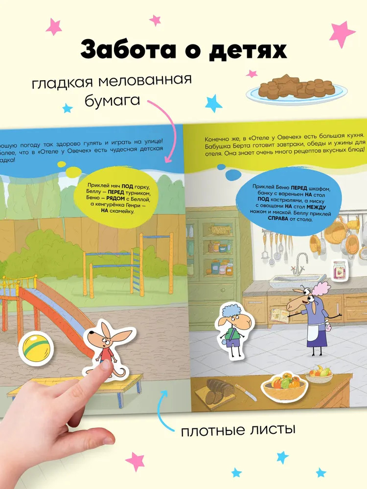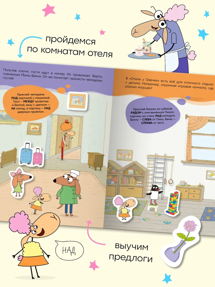 Наш отель. Развивающие наклейкиВ данный момент этот товар отсутствует в продаже. Возможно, у нас найдется аналогичный или похожий товар здесь. Серия: Отель у Овечек. Развивающие наклейки В книге «Наш отель» серии «Отель у Овечек» ребенка ждут увлекательные задания, которые научат ребенка ориентироваться в пространстве, потренируют логику, внимание, мышление, а еще внутри много наклеек, которые отлично развивают мелкую моторику. «Отель у Овечек» — лучший отель, в котором живут веселые и любознательные овечки Белла и Беня. В этой книжке они познакомят маленького читателя с его устройством. Благодаря удобному формату заниматься по книгам серии «Отель у Овечек. Развивающие наклейки» можно где угодно: дома, в поездке и на прогулке.  |