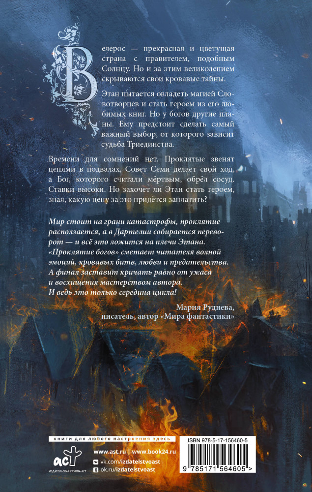 Серия: Словотворцы. Ковен магических миров Велерос — прекрасная и цветущая страна с правителем, подобным Солнцу. Но и за этим великолепием скрываются свои кровавые тайны. Этан пытается овладеть магией Словотворцев и стать героем из его любимых книг. Но у Богов другие планы. Ему предстоит сделать самый важный выбор, от которого зависит судьба Триединства. Времени для сомнений нет. Проклятые звенят цепями в подвалах, Совет Семи делает свой ход, а Бог, которого считали мёртвым, обрeл сосуд. Ставки высоки. Но захочет ли Этан стать героем, зная какую цену за это придётся заплатить? |