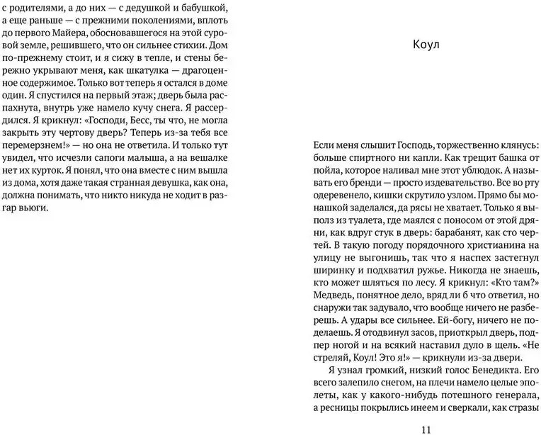 Свирепые вьюги — обычное дело на краю света. Однажды во время метели пропадает десятилетний мальчик. Его судьба беспокоит троих не связанных друг с другом взрослых, пустившихся на поиски — ветерана Вьетнама богобоязненного Фримана, огненно-рыжую под стать темпераменту Бесс и угрюмого, как медведь-кадьяк, Бенедикта. В их распоряжении считанные часы. Каждый из них хранит свою тайну. |