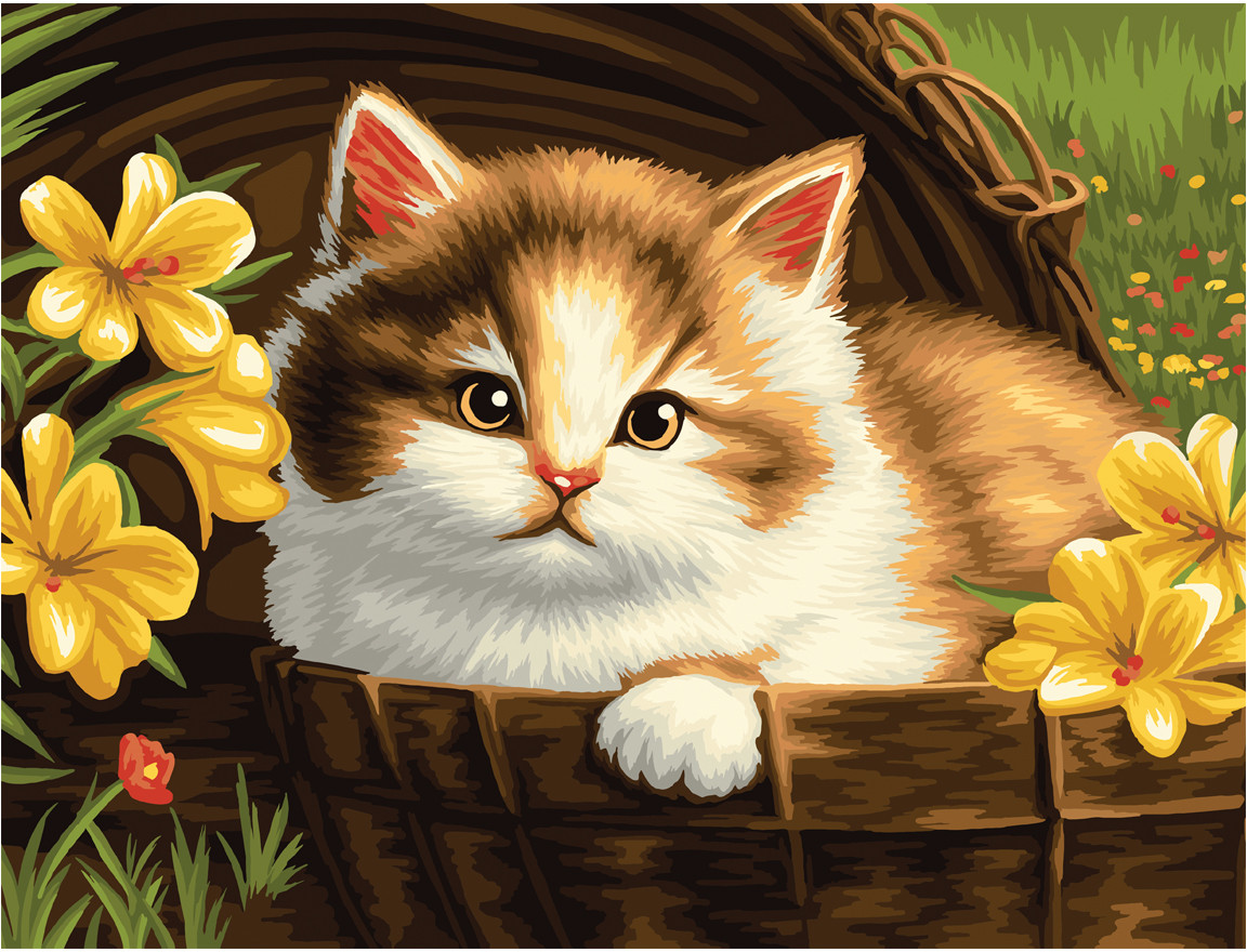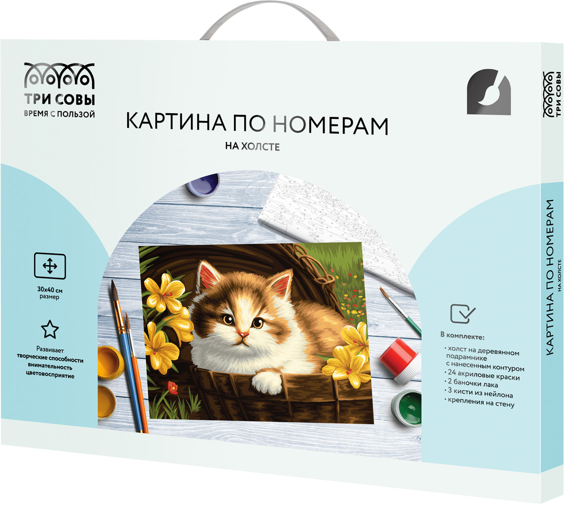 • холст на деревянном подрамнике 30×40 см с нанесенным контуром, пронумерованный в соответствии с номерами красок. Контур под раскрашивание нанесен в том числе и на торцы подрамника, что позволяет разместить готовую работу на стене не обрамляя в багет или раму. Технология точной разбивки сюжета картины на разные цветовые оттенки гарантируют правильность исполнения полотна;