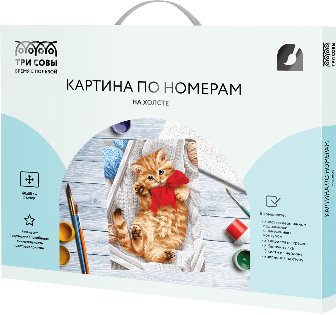 • холст на деревянном подрамнике 40×50 с нанесенным контуром, пронумерованный в соответствии с номерами красок. Контур под раскрашивание нанесен в том числе и на торцы подрамника, что позволяет разместить готовую работу на стене не обрамляя в багет или раму. Технология точной разбивки сюжета картины на разные цветовые оттенки гарантируют правильность исполнения полотна;