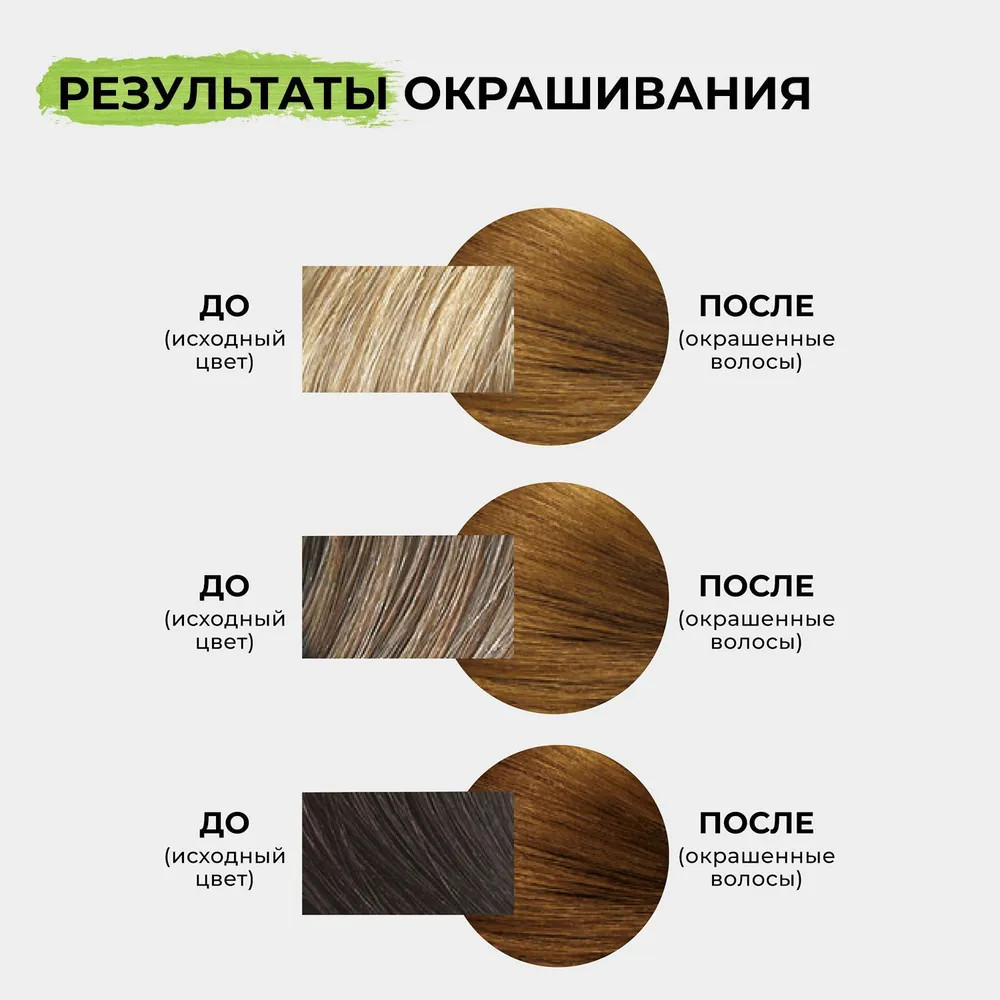Неплохо выравнивает тон. Одной пачки хватает на короткие волосы. Для длинных волос лучше взять пару-тройку упаковок.