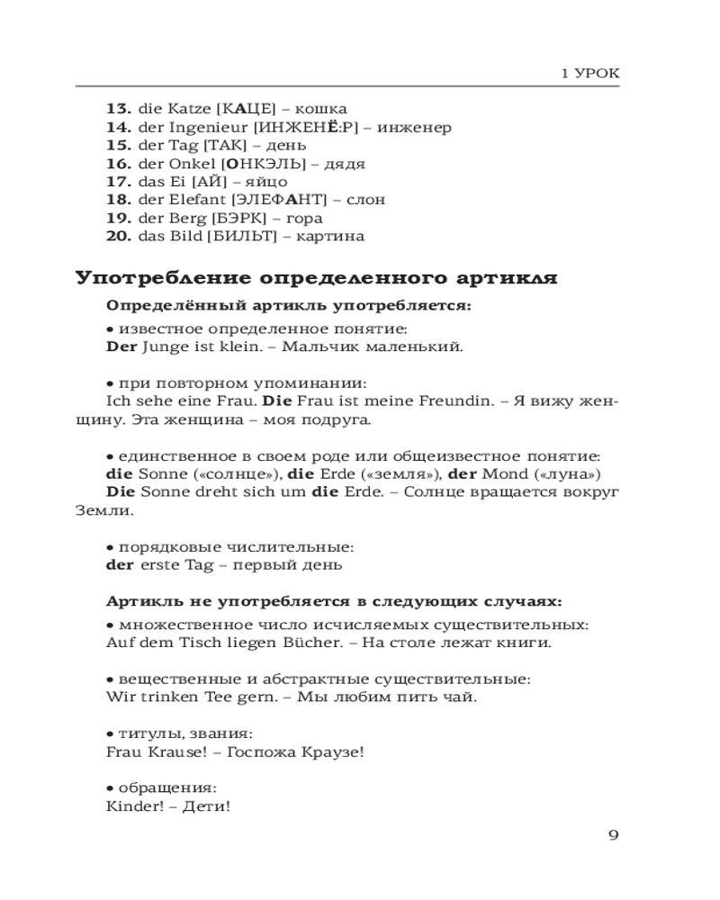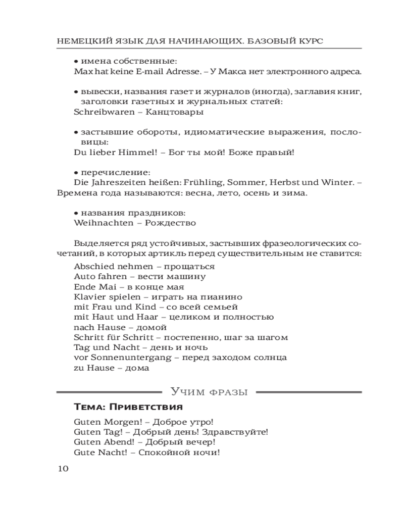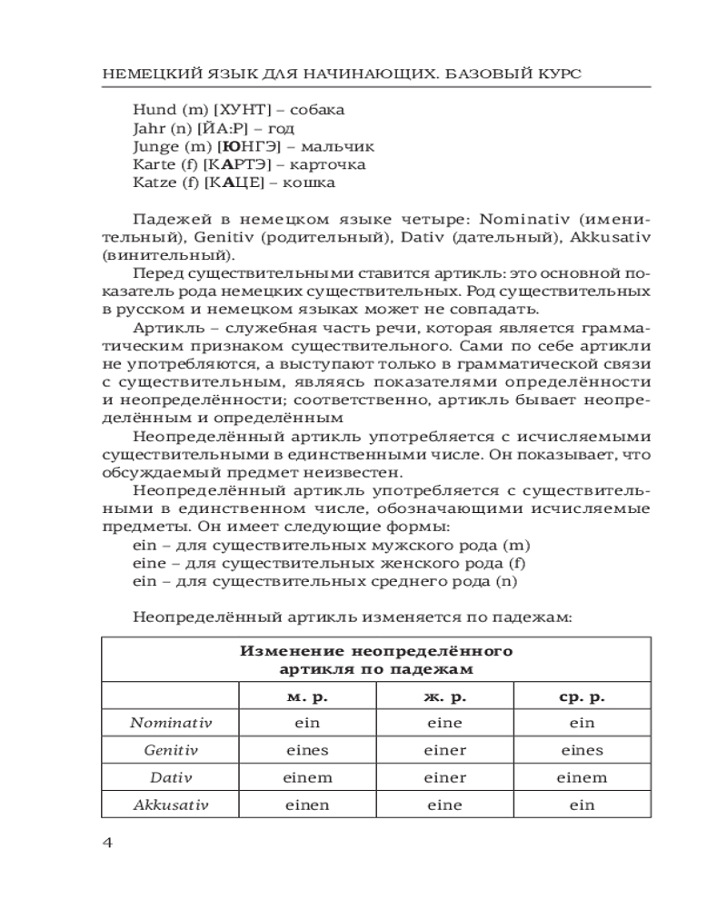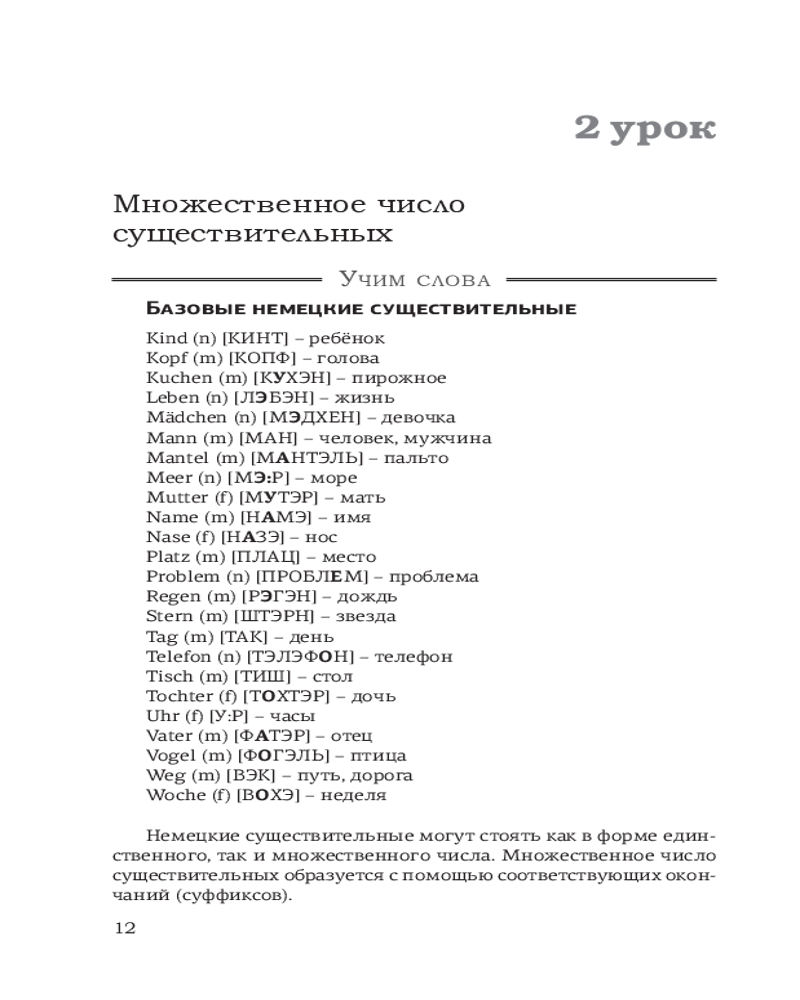 Данное издание содержит базовый материал по лексике и грамматике немецкого языка для начинающих (уровни А1-А2). К каждому уроку приводятся самые употребительные немецкие слова, а также упражнения. Ключи к упражнениям удобно расположены рядом, поэтому не нужно постоянно заглядывать в конец книги.