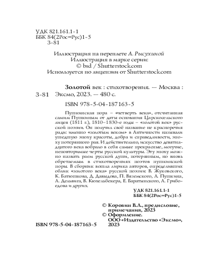 💳 Оплатить за товар можно при получении 🇰🇿 Есть бесплатная доставка по Казахстану 🎁 Копите бонусы с каждой покупки Серия: Собрание больших поэтов Пушкинская пора — «четверть века», отсчитанная самим Пушкиным от даты основания Царскосельского лицея (1811 г.), 1810–1830-е годы — «золотой век» русской поэзии. Он получил своё название не красноречия ради: именно «золотым веком» в античности называли ушедшую эпоху красоты, добра и справедливости, эпоху потерянного рая. И действительно, искусство девятнадцатого века вобрало в себя самые прекрасные, могучие, неповторимые черты русской культуры. Эту эпоху можно назвать раем русской души, потерянным, но вновь обретаемым в стихотворениях поэтов пушкинской поры. В сборник вошла лирика авторов, определивших облик «золотого века» русской поэзии: В. Жуковского, К. Батюшкова, Д. Давыдова, П. Вяземского, А. Пушкина, А. Дельвига, В. Кюхельбекера, Е. Баратынского, А. Грибоедова и других. |