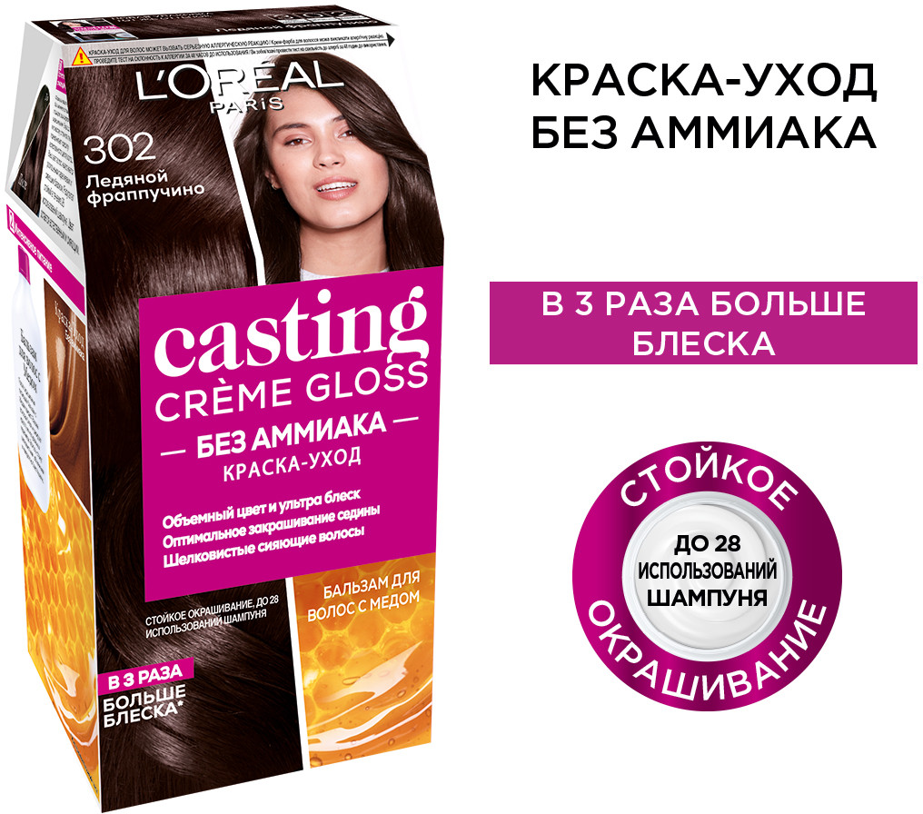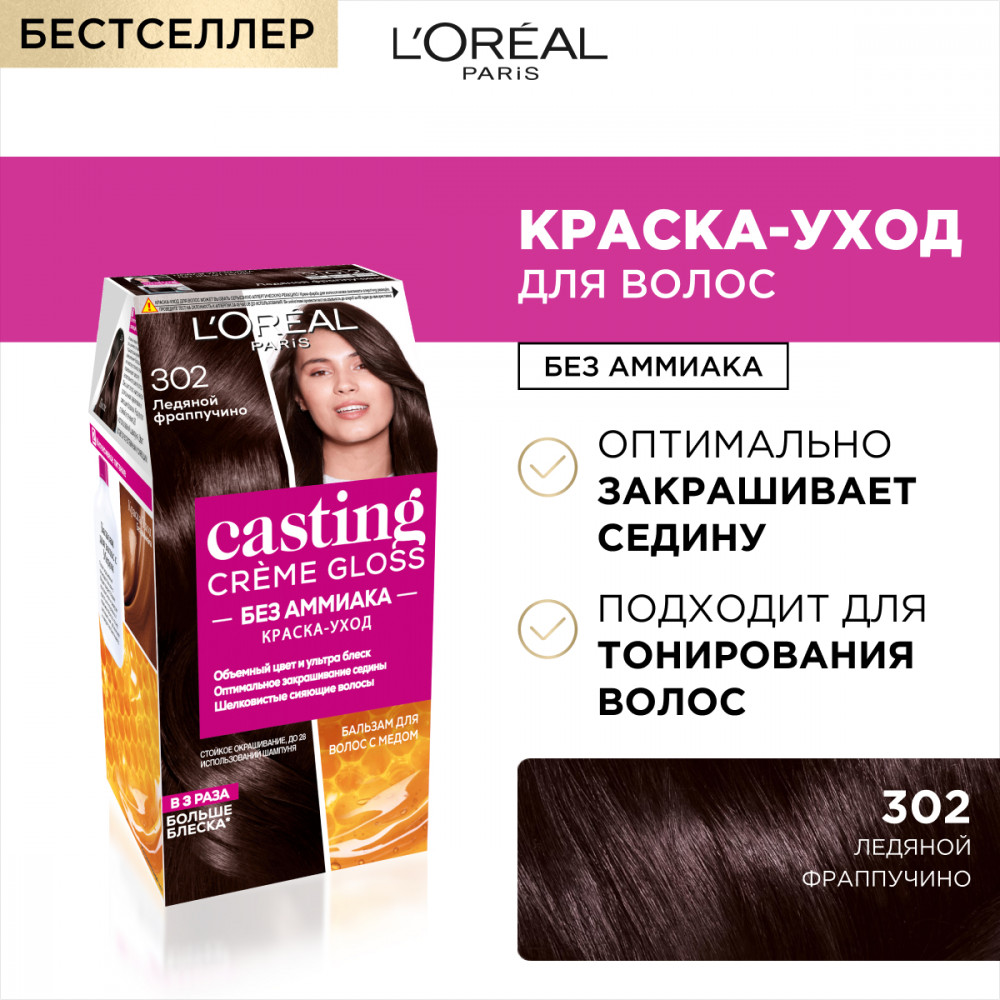 L'Oreal Paris Краска-уход для волос без аммиака, оттенок 302 Ледяной фраппучино