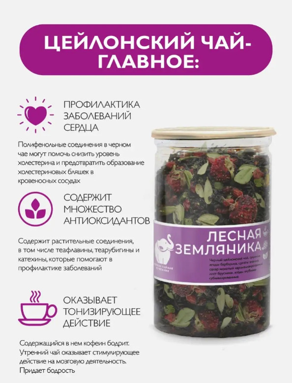 Первая чайная компания Чай «Лесная земляника»В данный момент этот товар отсутствует в продаже. Возможно, у нас найдется аналогичный или похожий товар здесь. Уникальный чайный напиток Лесная земляника бренда Первая Чайная Компания обладает натуральным составом и массой полезных свойств. Он поразит своим утонченным вкусом и легким, приятным ароматом. В нем содержатся черный цейлонский чай, сушеные ягоды барбариса, цукаты ананаса, сахар молотый карамелизированный, лист брусники, ягоды клубники сублимированные, натуральные пищевые ароматизаторы. |