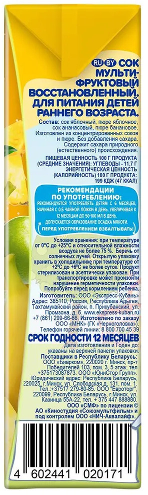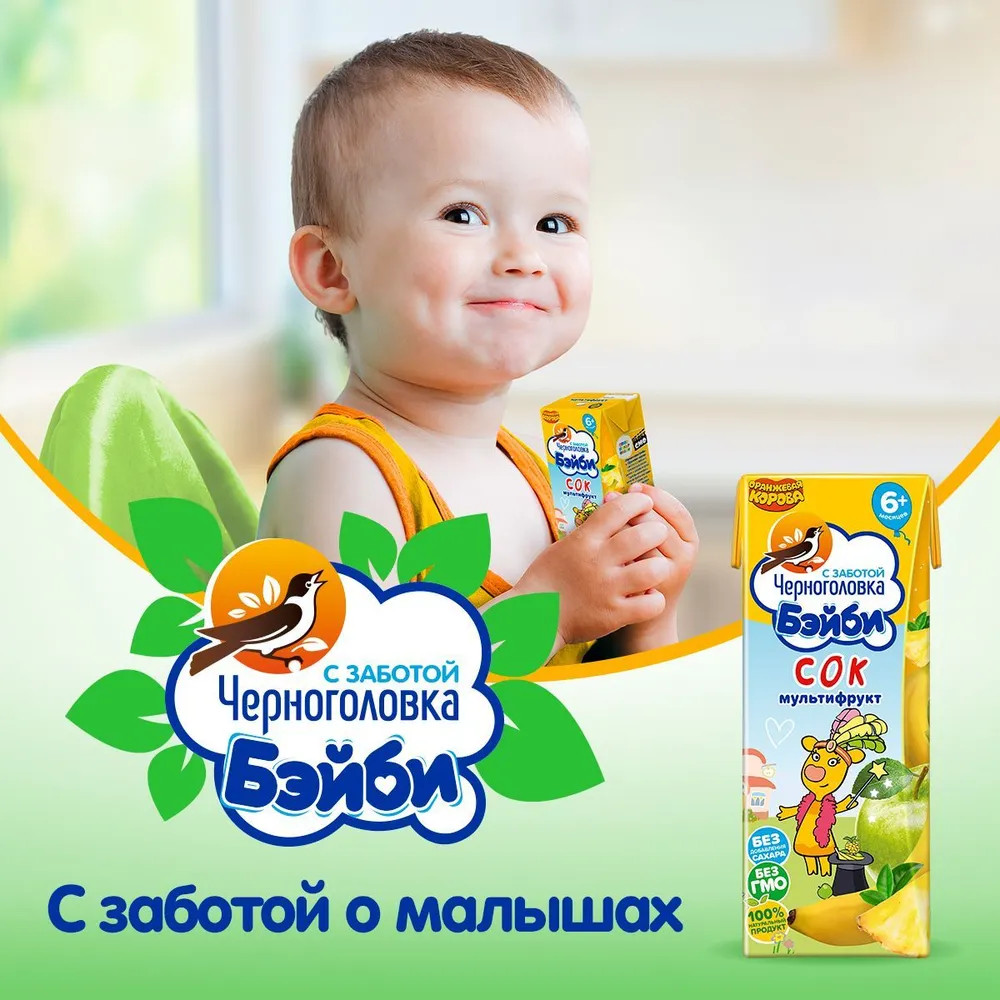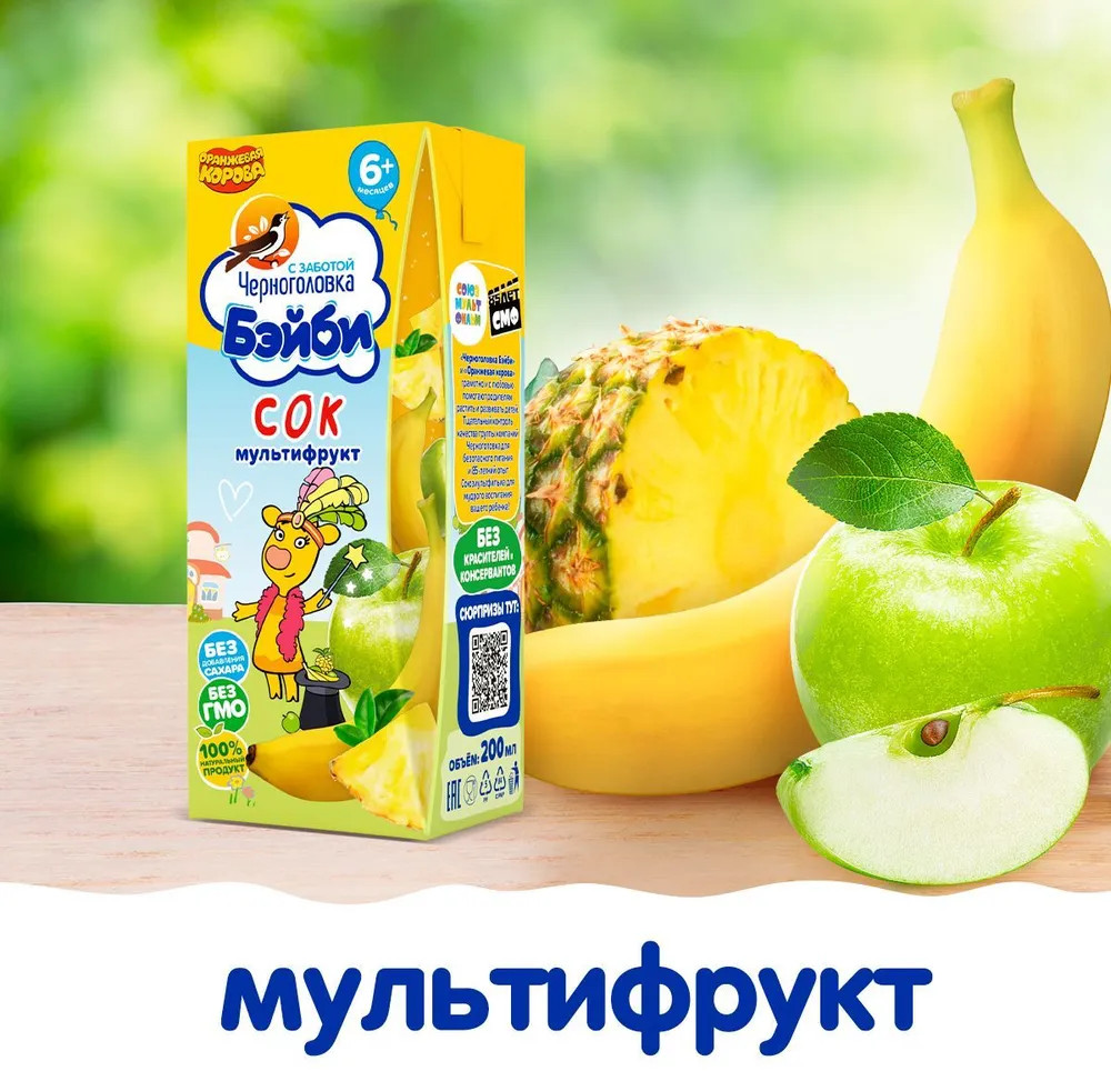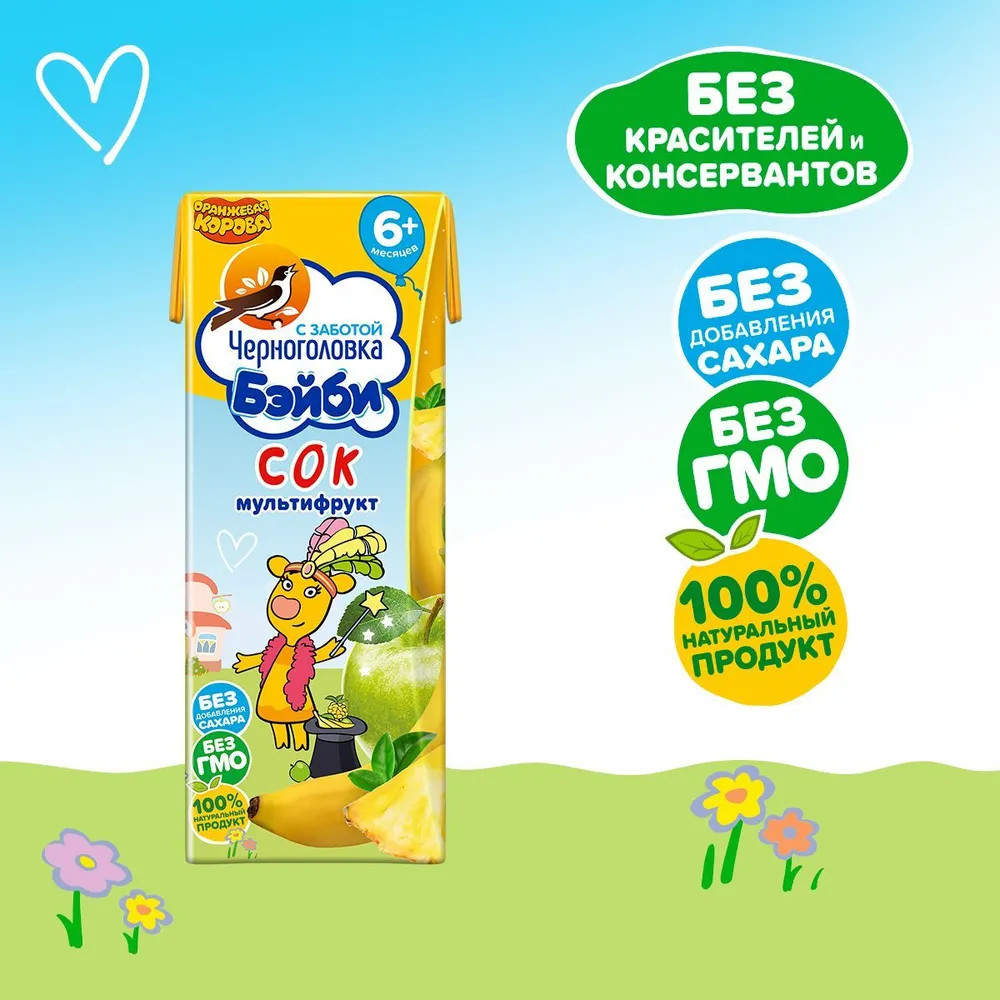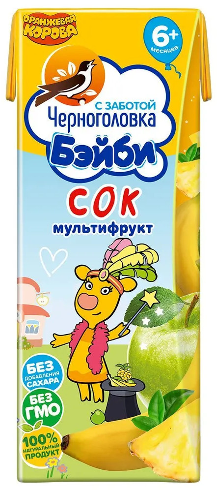 Сок «Черноголовка Бэйби» — вкусный 100% натуральный продукт, который удобно взять с собой на прогулку, в поездку или на пикник. Благодаря удобной и безопасной упаковке ребенок может пить самостоятельно. А изображения героев любимого мультсериала «Оранжевая корова» развлекут и порадуют малыша.