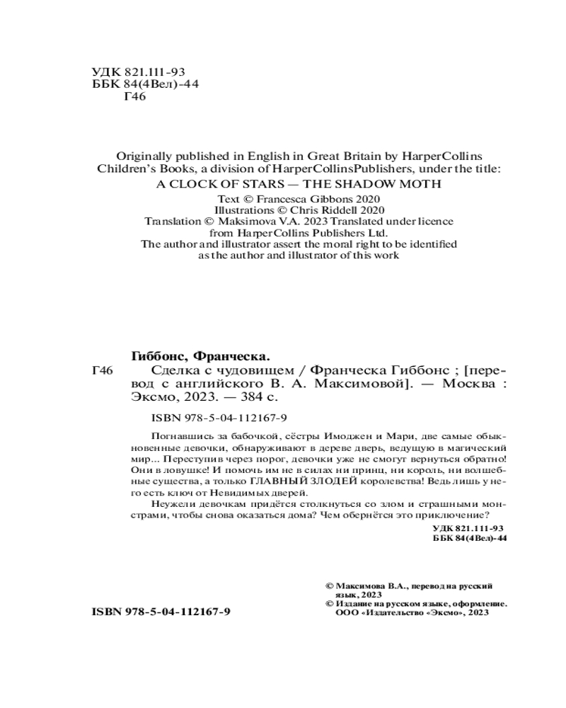 💳 Оплатить за товар можно при получении 🇰🇿 Есть бесплатная доставка по Казахстану 🎁 Копите бонусы с каждой покупки Серия: Детск. Часы звёзд. Фэнтези с иллюстрациями Криса Ридделла Суперновинка! Первая книга новой захватывающей трилогии «Часы звезд». Немного сумасшедшее подростковое фэнтези для фанатов «Коралины» и других книг Нила Геймана. |