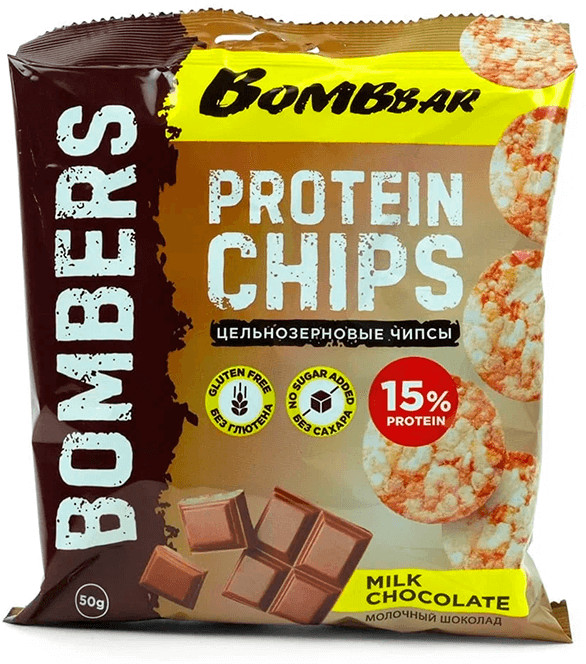 Bombbar Чипсы цельнозерновые протеиновые со скусом молочного шоколада «Bombers»