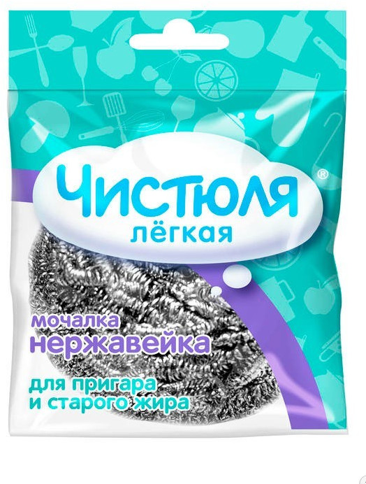 Серия: Лёгкая Легкая металлическая мочалка «Чистюля», изготовленная из нержавеющей стали, имеет маленький размер и облегченный вес. Благодаря спиральному плетению мочалка служит дольше и не прокалывает перчатки. |