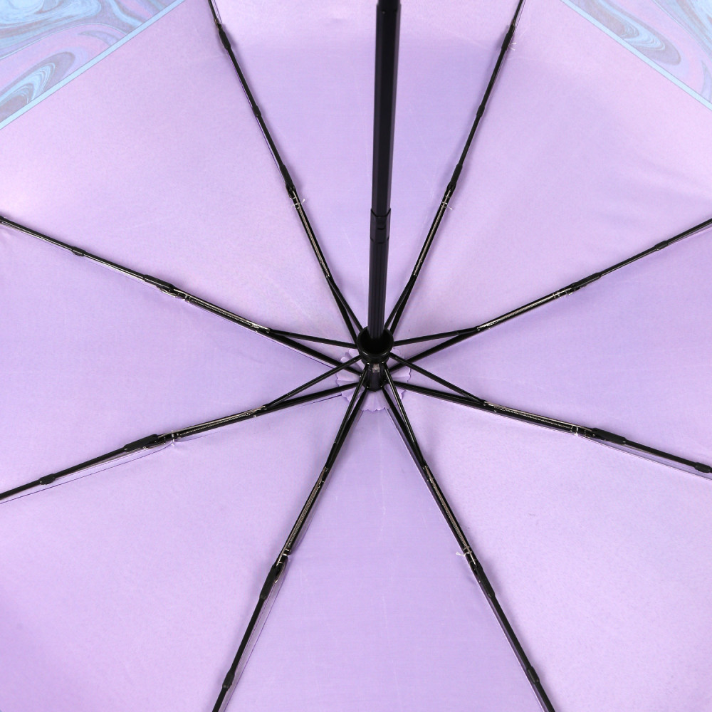 хороший зонт. Застёжка на кнопке,что очень удобно (липучка быстро изнашивается). Туговат при складывании, да и сам зонт тяжеловат, видимо из-за материала. Материал похож на атлас, не обычный как у всех зонтов, не промокает. Конструкция зонта качественная. Надеюсь хватит надолго.