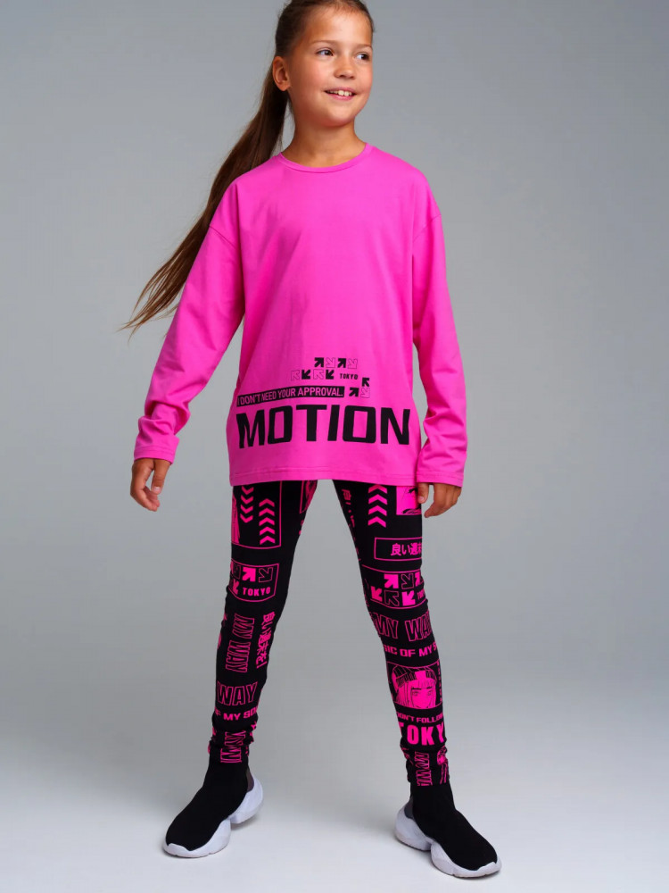 Комплект: лонгслив и легинсы из качественного эластичного и приятного на ощупь трикотажа джерси. Высокое содержание хлопка. Благодаря наличию эластана в составе ткани изделие держит форму и меньше мнется.
