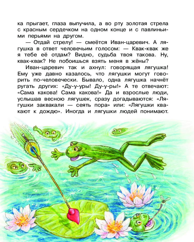 Царевна-лягушкаВ данный момент этот товар отсутствует в продаже. Возможно, у нас найдется аналогичный или похожий товар здесь. Серия: Научные сказки Знаменитый поэт, писатель и переводчик Валентин Дмитриевич Берестов написал свою «Царевну-лягушку» — весёлую и познавательную сказку, по которой ставят спектакли в многих театрах. Эта книга расскажет не только о том, как Иван-царевич спас заколдованную Василису Премудрую, но и о том, как животные предсказывают погоду, какие грибы и ягоды растут в лесу, как выглядит ракитов куст, как головастик становится лягушкой, а гусеница превращается в бабочку. В книгу вошли сказки «Царевна лягушка», «Честное гусеничное», «Злое утро», «Как найти дорожку». |