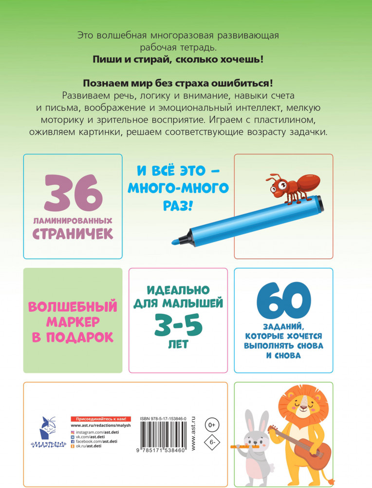 Серия: Многоразовая тетрадь с маркером «Пиши-стирай. 3-5 лет» — это волшебная многоразовая развивающая рабочая тетрадь. Пиши и стирай, сколько хочешь: |