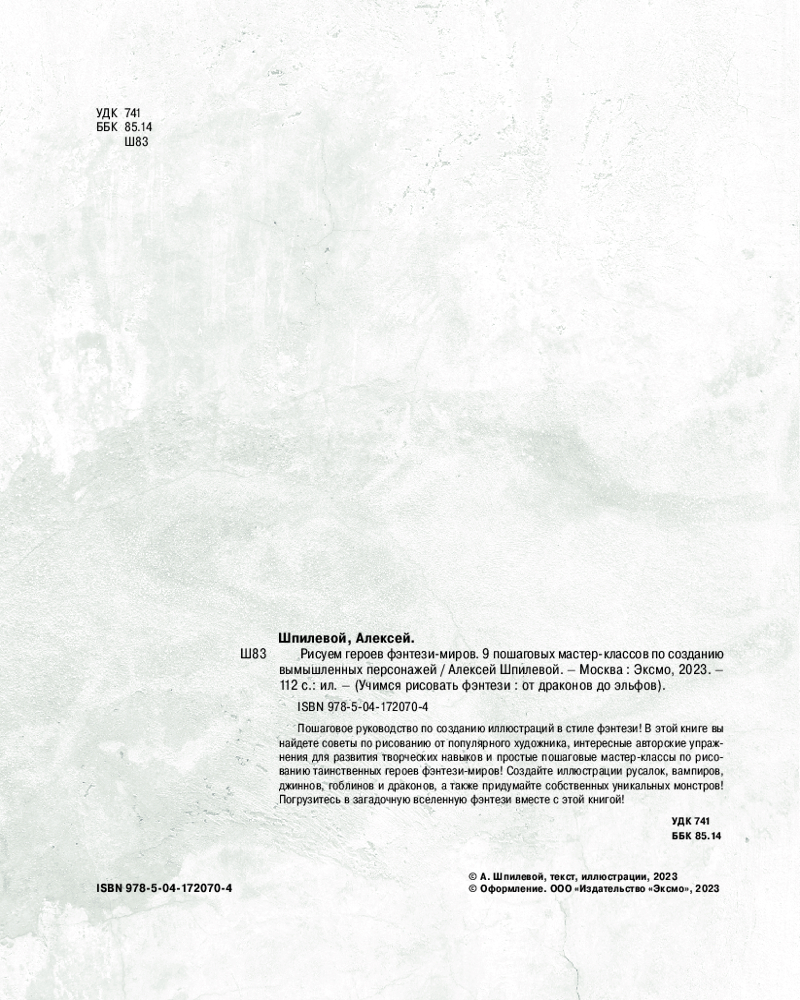 Серия: Учимся рисовать фэнтези: от драконов до эльфов Первое руководство по рисованию стиле темного фэнтези! Погрузитесь в мрачную и манящую атмосферу монстров с помощью этой книги! Вооружайтесь любимыми арт-материалами и отправляйтесь в увлекательное путешествие по фантастическим вселенным! |