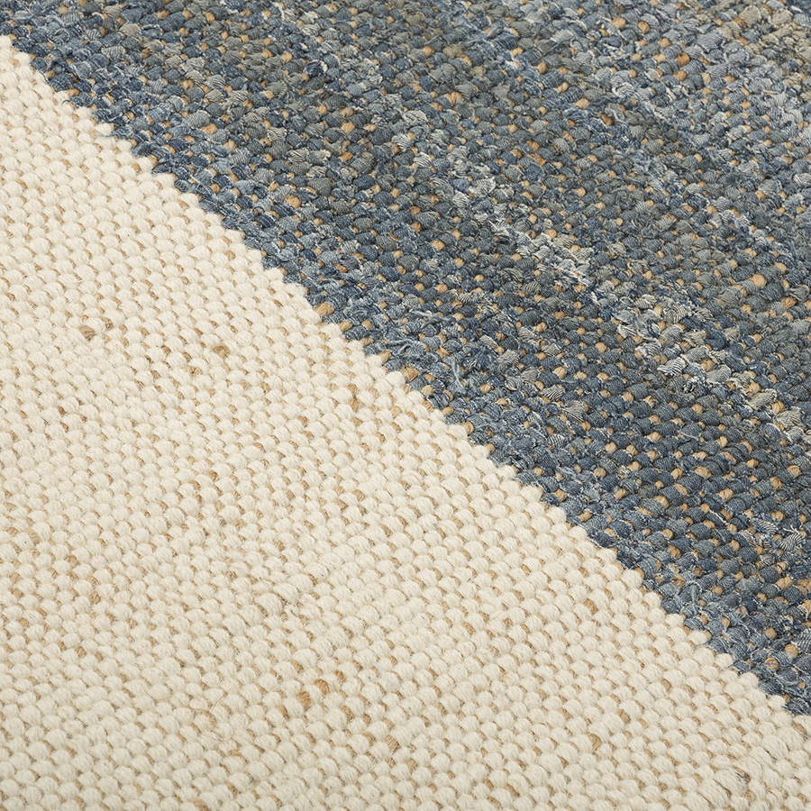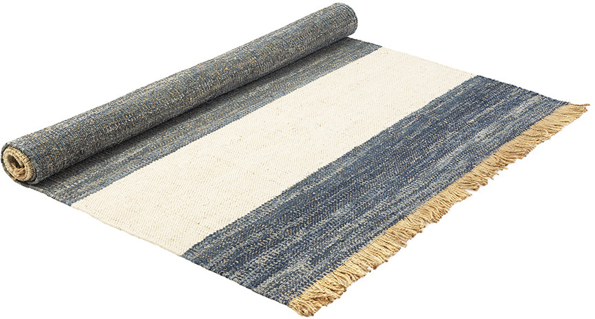 Ковер Hyderabad из коллекции Ethnic отлично смотрится в современных интерьерах и эклектичных пространствах. Одним из главных достоинств дизайна является сочетание трех уникальных материалов. Джут делает это напольное покрытие практичным и долговечным, обеспечивая стойкость к износу и сохраняя его первоначальную форму на протяжении долгого времени. Деним добавляет в оформление модный акцент. Шерсть придает изделию мягкость, создавая приятное ощущение под ногами. Благодаря натуральной цветовой палитре ковер прекрасно гармонирует с мебелью и предметами интерьера любых оттенков.